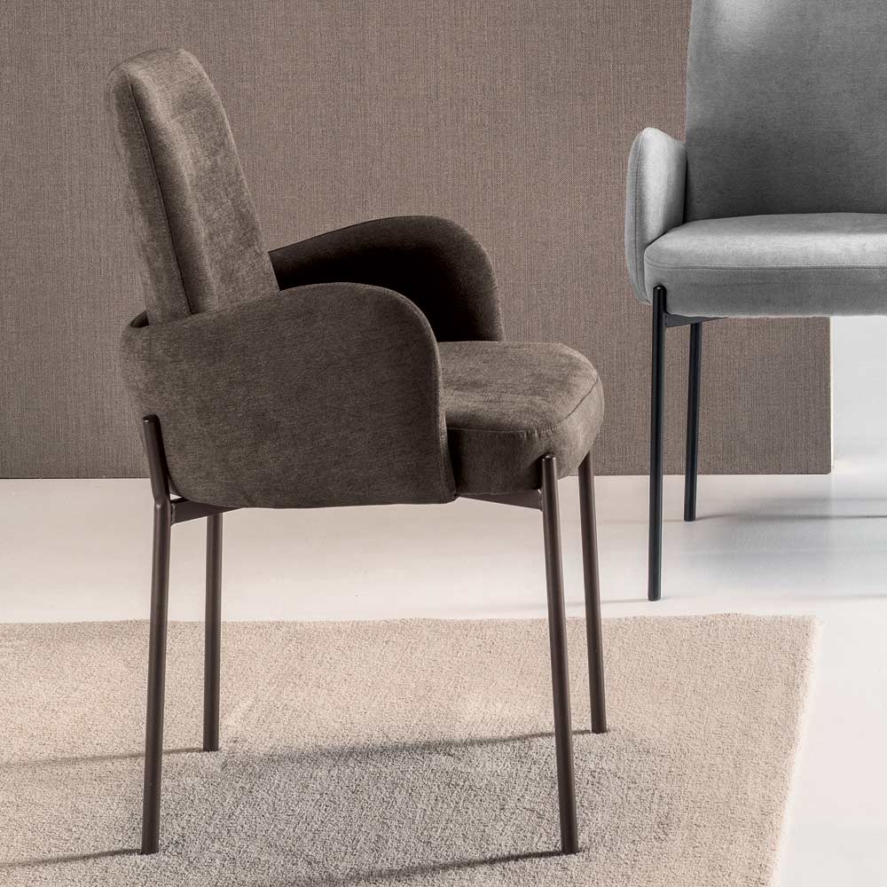 La struttura in metallo verniciato, sottile ma resistente, accoglie la seduta come un elemento prezioso incastonato nella struttura, esaltandone il profilo e conferendo leggerezza visiva al design complessivo. Disponibile in diverse finiture e colori per adattarsi facilmente a vari stili di arredamento.