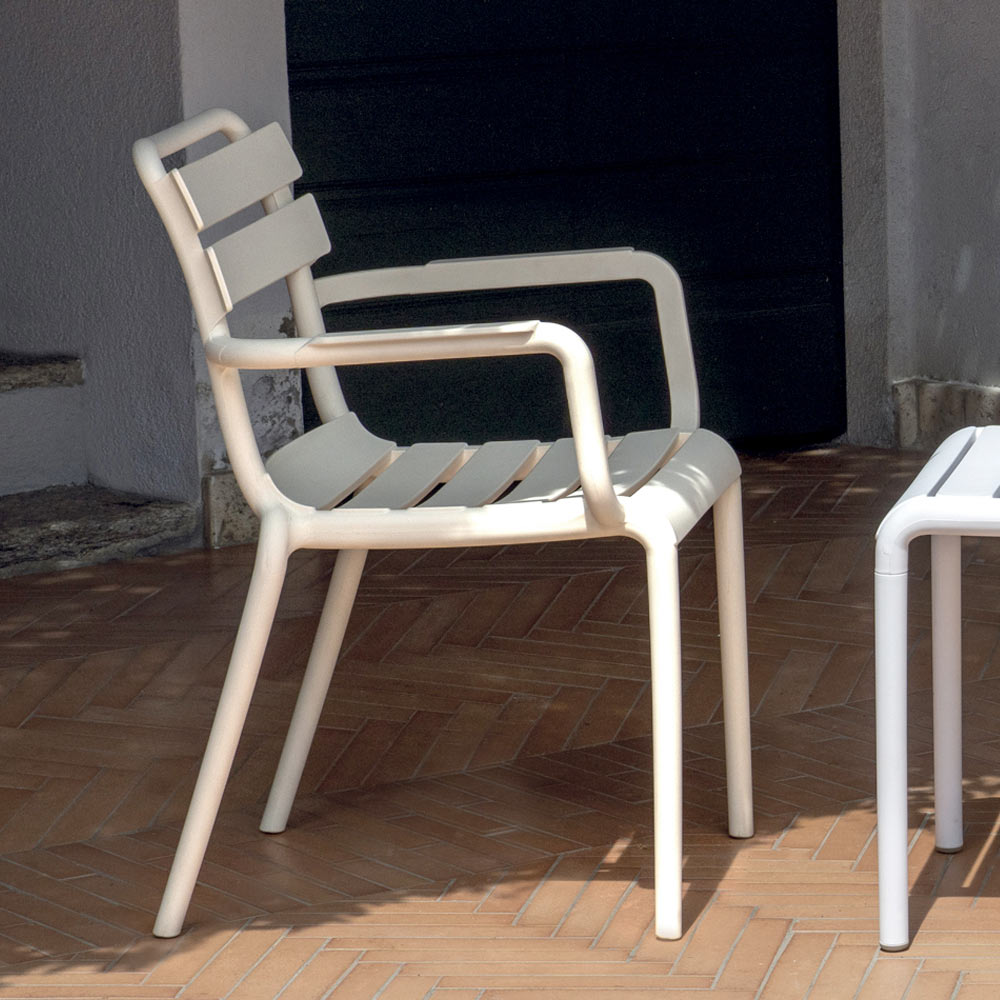 Il materiale è resistente ai raggi UV, assicurando colori sempre brillanti e superfici inalterate anche dopo una lunga esposizione al sole. Dal design moderno e lineare, questa sedia si adatta con facilità a diversi contesti — dal giardino alla terrazza, fino a spazi contract come bistrot e hotel.