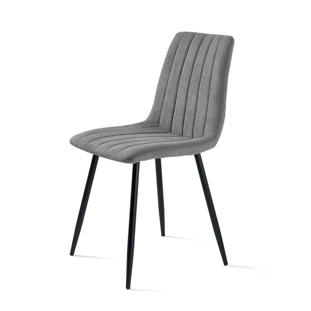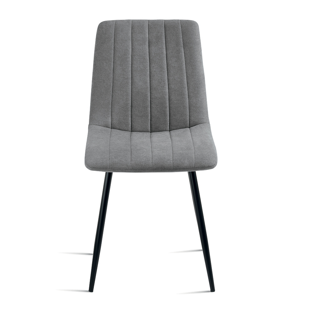 Elegante set di 4 sedie moderne pensato per arredare con stile la sala da pranzo, la cucina o la zona living. La seduta in tessuto con imbottitura offre comfort e accoglienza, mentre la struttura in metallo verniciato garantisce stabilità e resistenza nel tempo.