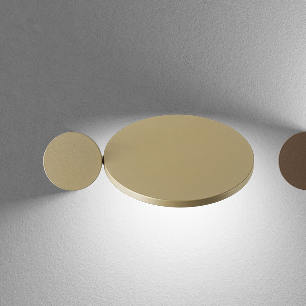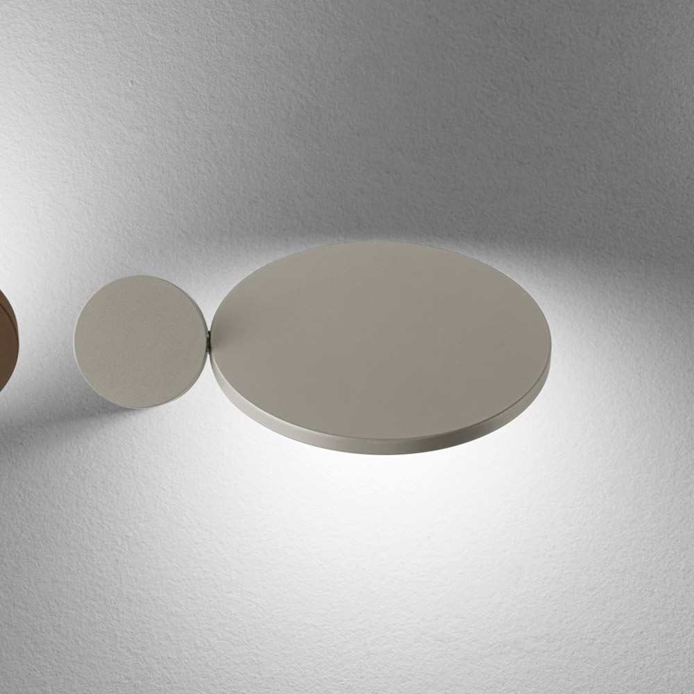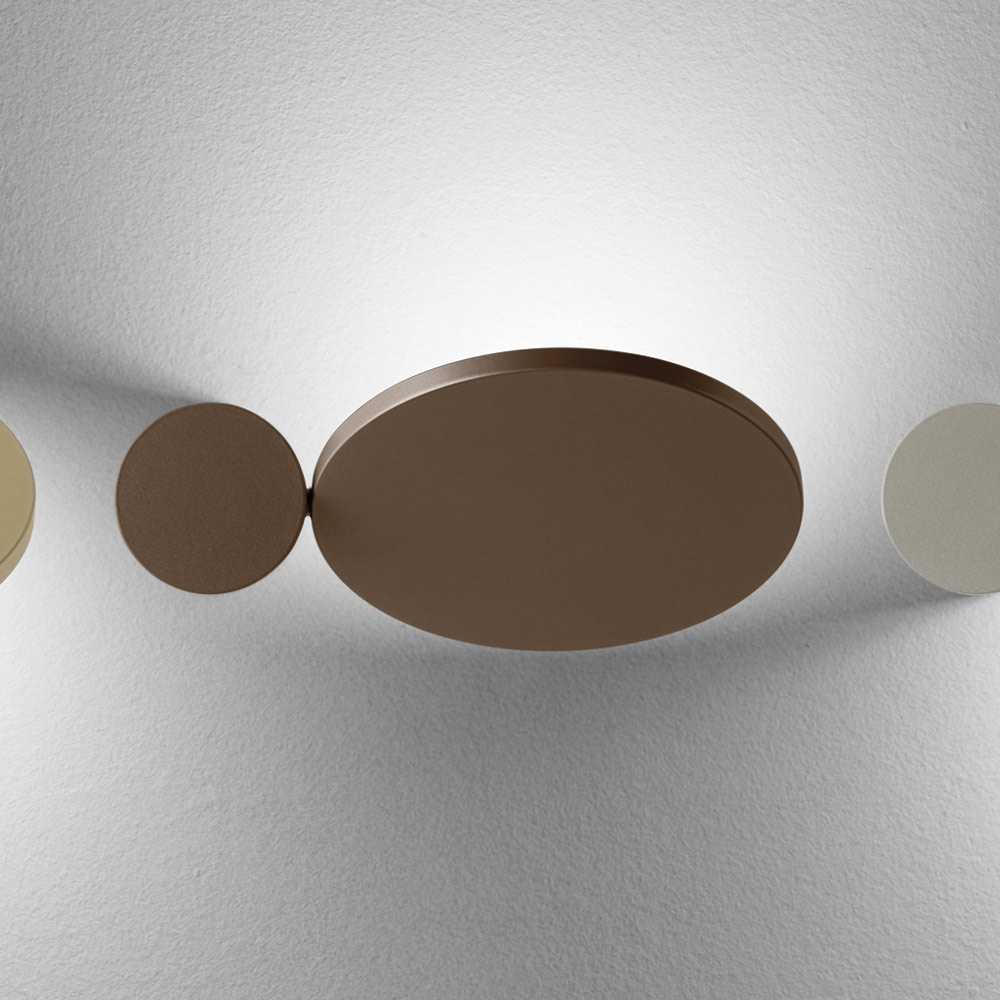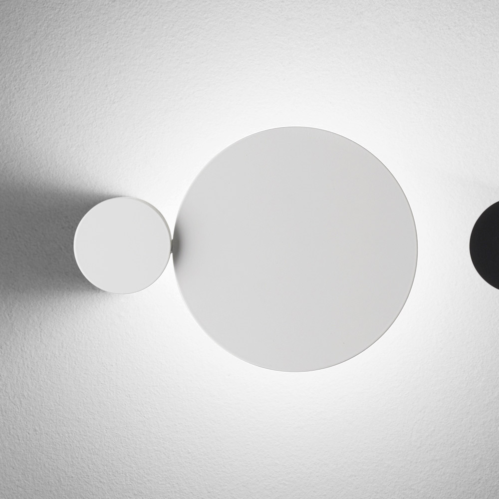 Questa applique da parete è una vera opera d’arte luminosa, che fonde design grafico e funzione decorativa in un solo gesto. Composta da forme geometriche essenziali, gioca con dischi e ovali sovrapposti che, una volta accesa, creano un effetto di luce morbido e scenografico sulla parete.