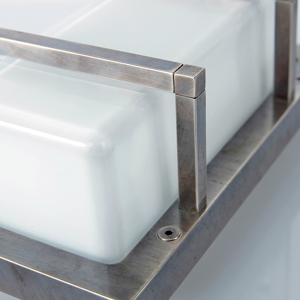 Essenziale ed elegante, questa applique di design artigianale è una soluzione luminosa raffinata, pensata per valorizzare pareti moderne e ambienti dal gusto contemporaneo. La struttura in ottone pressofuso, abbinata a un diffusore rettangolare in vetro opale, crea una luce morbida e uniforme, ideale per un’illuminazione accogliente e funzionale.