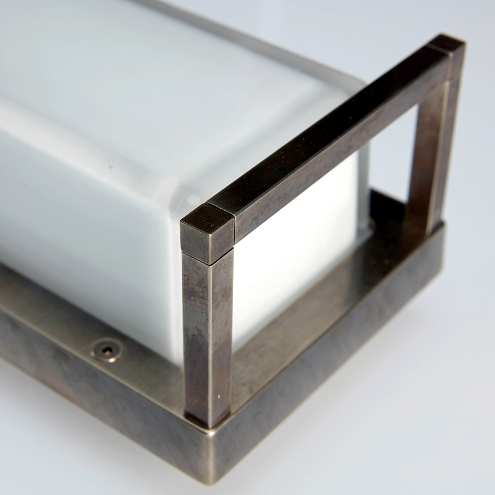 Essenziale ed elegante, questa applique di design artigianale è una soluzione luminosa raffinata, pensata per valorizzare pareti moderne e ambienti dal gusto contemporaneo. La struttura in ottone pressofuso, abbinata a un diffusore rettangolare in vetro opale, crea una luce morbida e uniforme, ideale per un’illuminazione accogliente e funzionale.