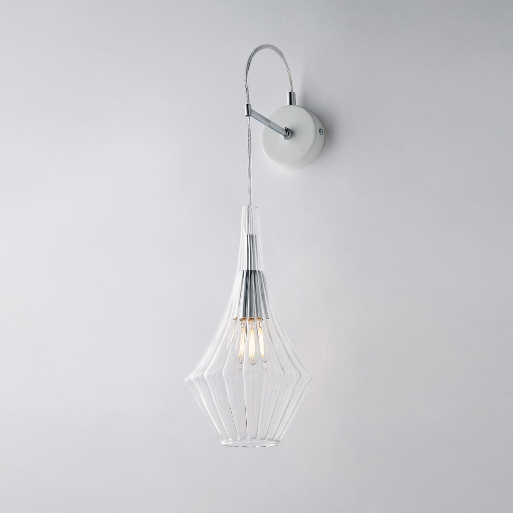 Disponibile nelle finiture Trasparente, Ambra o Grigio, questa applique consente di personalizzare l’atmosfera dell’ambiente: luminosa e minimale nella versione trasparente, calda e avvolgente in ambra, moderna ed elegante in grigio. È ideale per corridoi, ingressi, camere da letto, zone living e ambienti contract di design, sia come punto luce singolo sia in composizione.