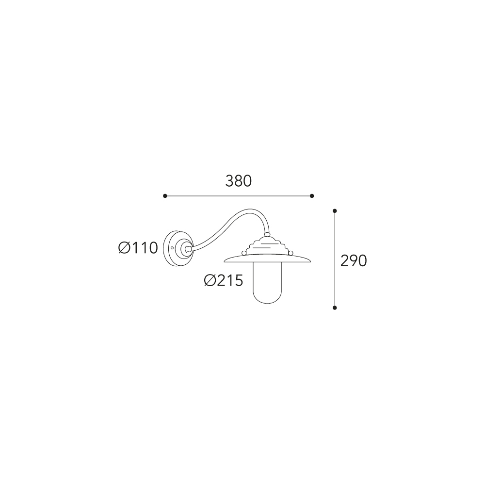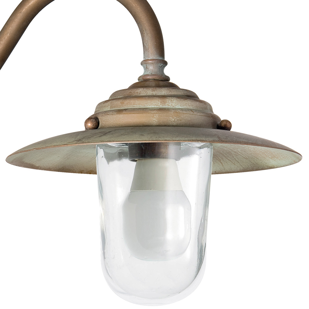 Il braccio curvo e il cappello metallico richiamano lo stile delle lampade tradizionali da esterni, reinterpretate in chiave elegante per valorizzare facciate, porticati, terrazze e ingressi. Una soluzione ideale per contesti classici, rustici o architettonicamente raffinati.