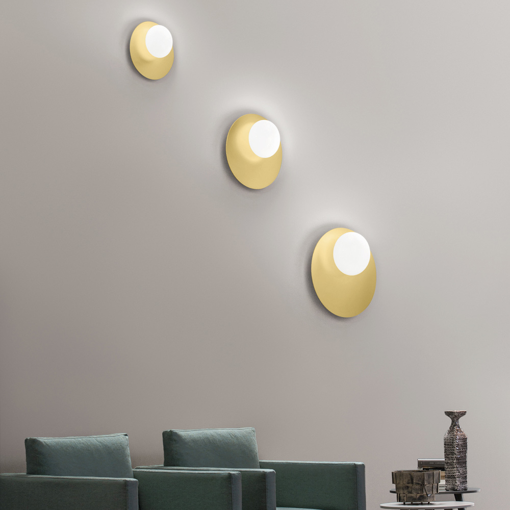 Questa applique da parete è un vero esempio di design minimalista ed elegante, perfetta per chi desidera impreziosire i propri ambienti con linee pulite e materiali raffinati. La struttura rotonda in metallo abbraccia un diffusore sferico in vetro bianco, creando un piacevole contrasto tra forma geometrica e luce morbida.