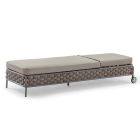 Chaise longue da giardino con struttura interna in alluminio verniciato color antracite avvolta da un intreccio elegante in corda poliestere finitura brown e cuscineria sfoderabile in gomma idrofuga rivestita in tessuto acrilico color brown.