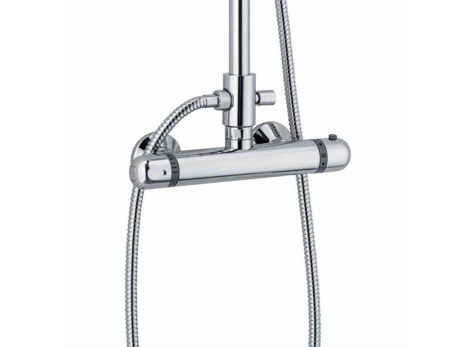 Colonna doccia moderna in ottone cromato con miscelatore termostatico Made in Italy.