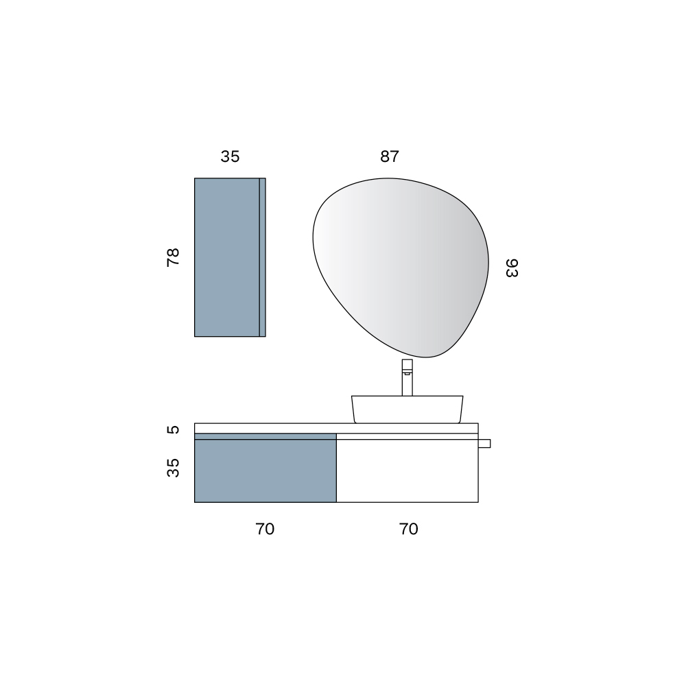 Il top bianco aggiunge un segno architettonico deciso, unendo funzionalità ed estetica. La superficie superiore diventa uno spazio operativo e decorativo, ideale per completare l’area lavabo con accessori coordinati.