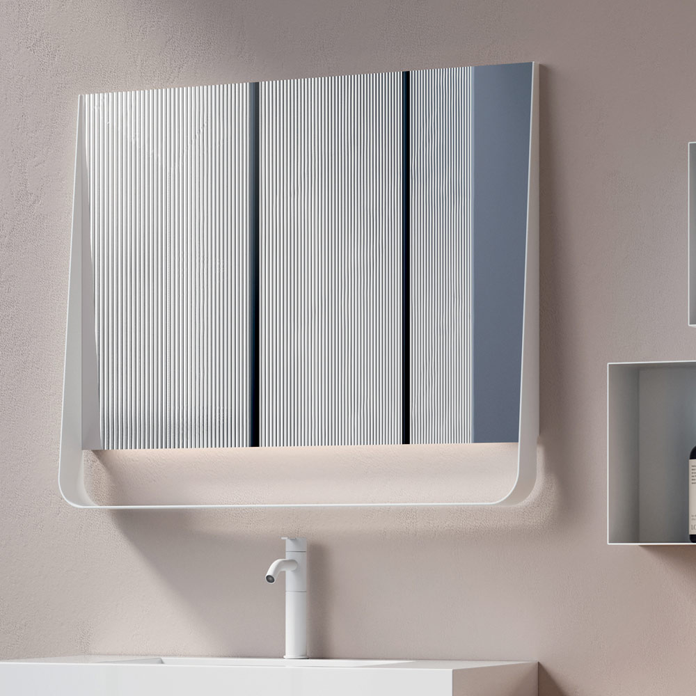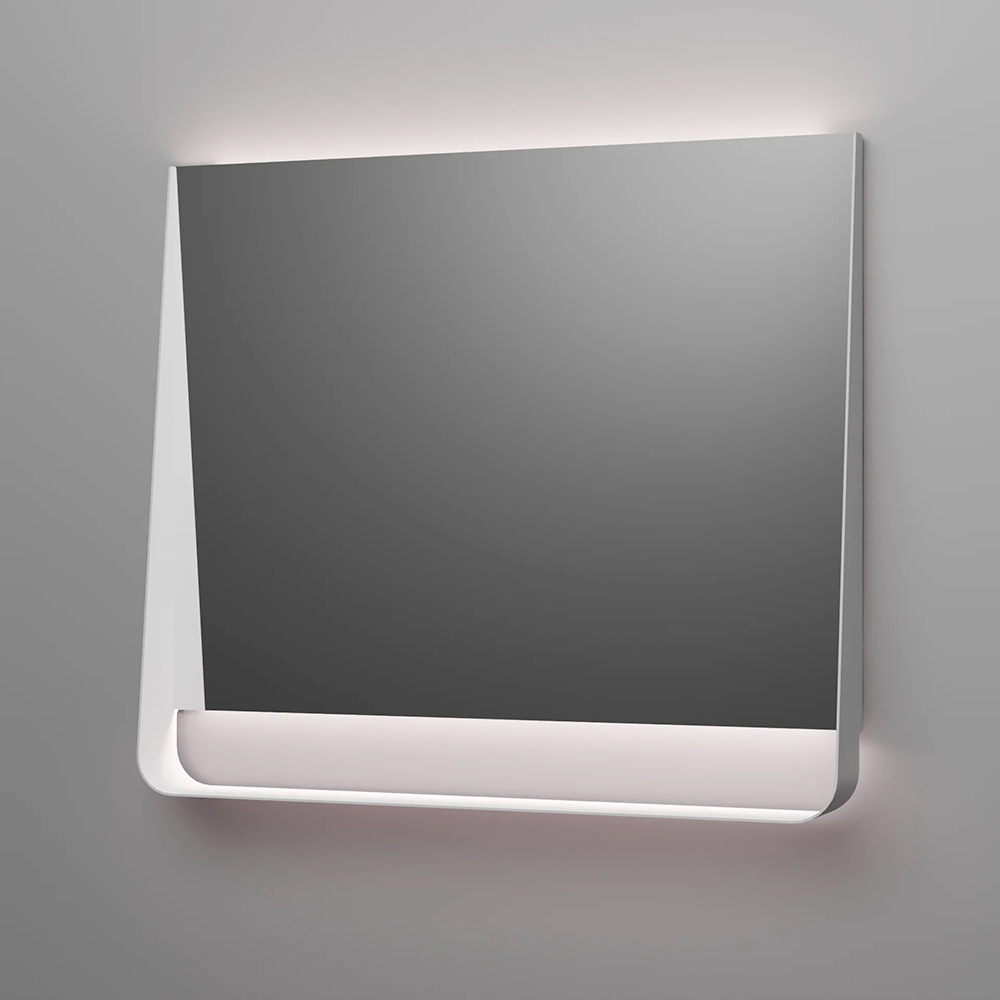 Lo specchio LED rettangolare, con illuminazione perimetrale, garantisce una luce uniforme e avvolgente, ideale per valorizzare la zona lavabo e migliorare il comfort visivo.