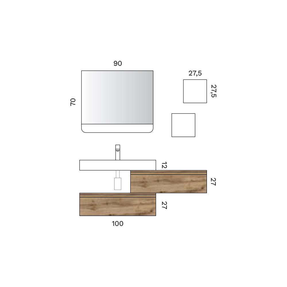 Elegante composizione bagno sospesa che combina il calore del legno naturale con linee contemporanee, ideale per ambienti bagno moderni e raffinati.