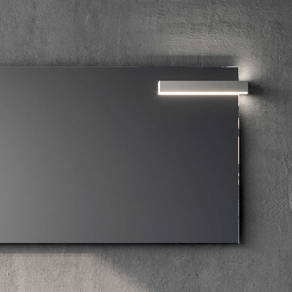 Lo specchio rettangolare con illuminazione LED assicura una luce uniforme e funzionale, perfetta per le attività quotidiane, contribuendo allo stesso tempo a enfatizzare la pulizia delle linee e la profondità dello spazio.