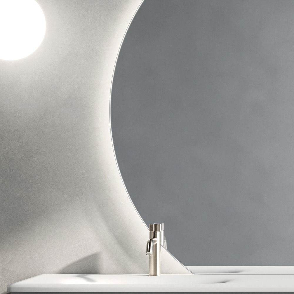 A completare l’insieme, lo specchio LED dal profilo circolare, che diffonde una luce morbida e uniforme, migliorando la funzionalità dell’area lavabo e contribuendo a creare un’atmosfera accogliente e rilassante.