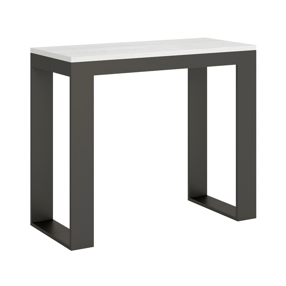 Questa consolle allungabile è un esemplare di design contemporaneo pensato per unire eleganza e praticità.