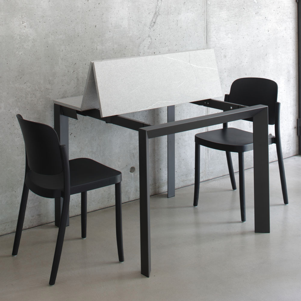La vera magia si svela nel suo potenziale di trasformazione: si espande facilmente in un tavolo di dimensioni generose, pronto per ospitare cene, sessioni di lavoro o momenti conviviali con amici e famiglia. È l'ideale per chi cerca soluzioni salvaspazio senza rinunciare alla funzionalità di un grande tavolo.