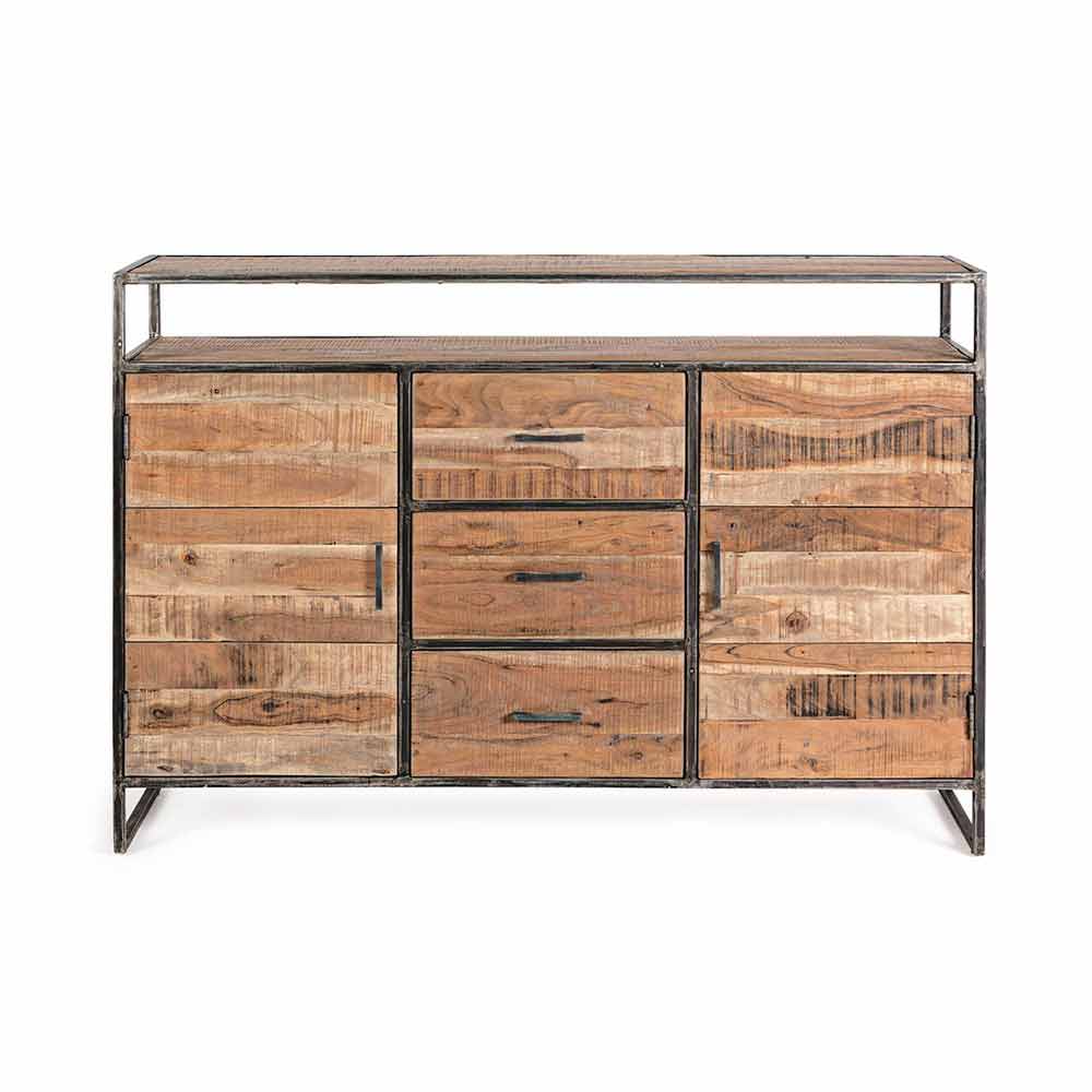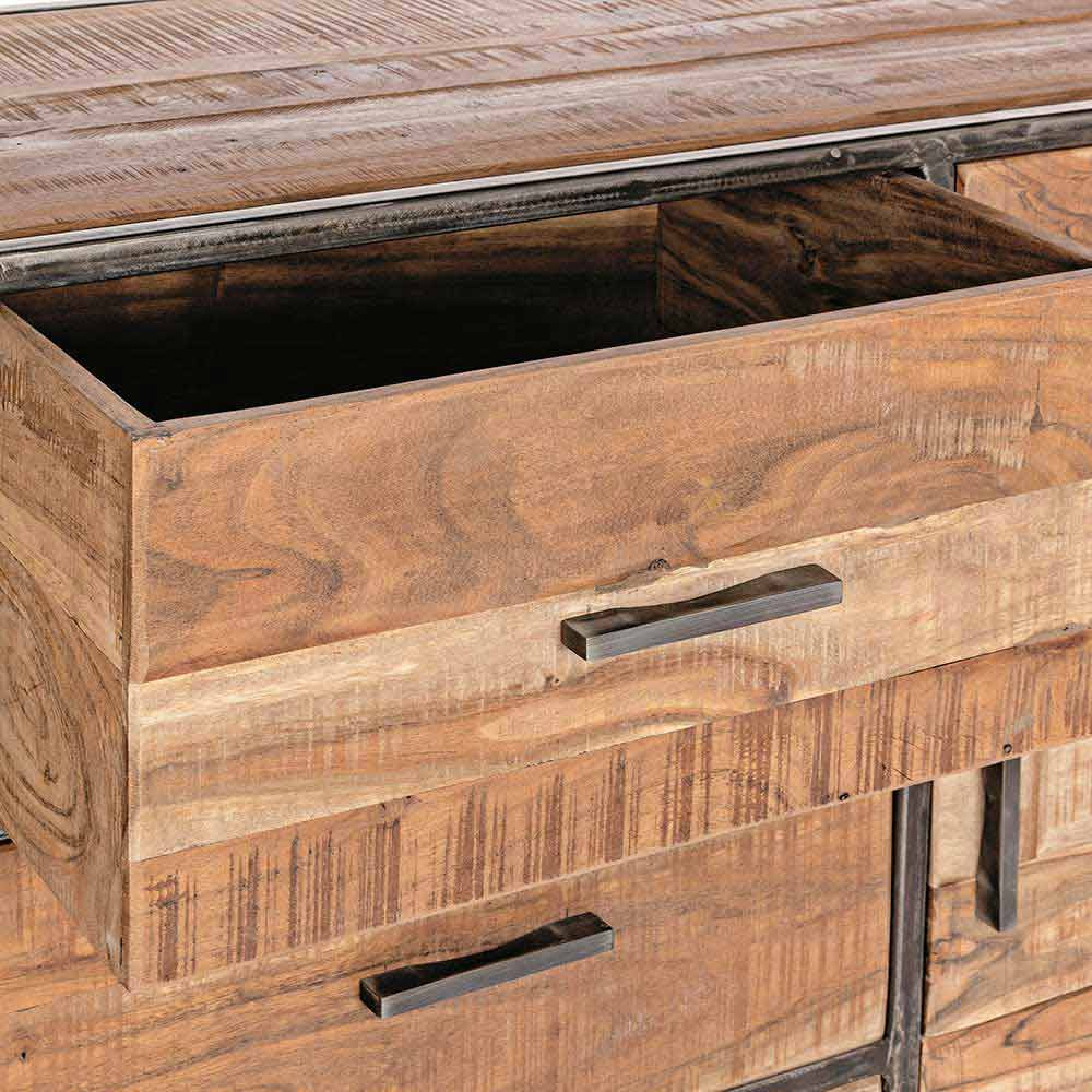 Credenza in stile industiale realizzata in legno di acacia e acciaio.