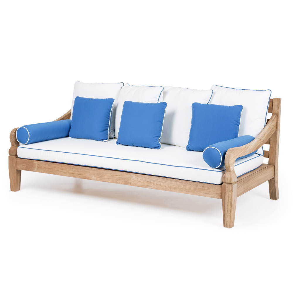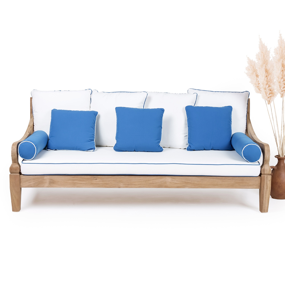 Divano da esterno 3 posti in legno teak naturale spazzolato con cuscini imbottiti