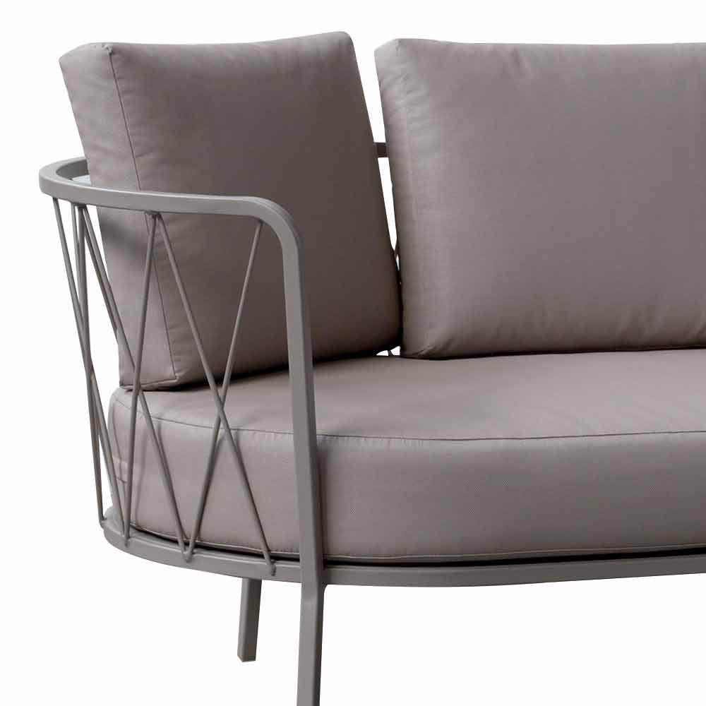 Divano a due posti realizzato in ferro zincato verniciato a polveri verniciato e tessuto di design Made in Italy.