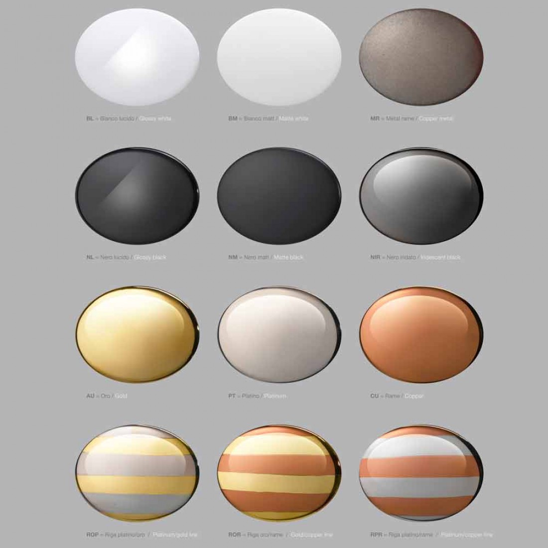 La tecnica utilizzata per realizzare la linea Gli Illustri è quella del lustro per fusione, contenente uno strato dei seguenti metalli preziosi: ora 24 carati, platino 22 carati e rame titolo al 90%.