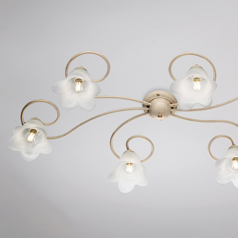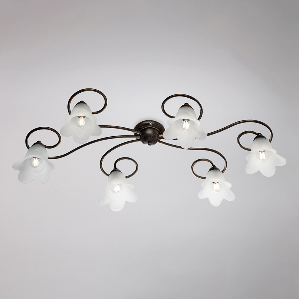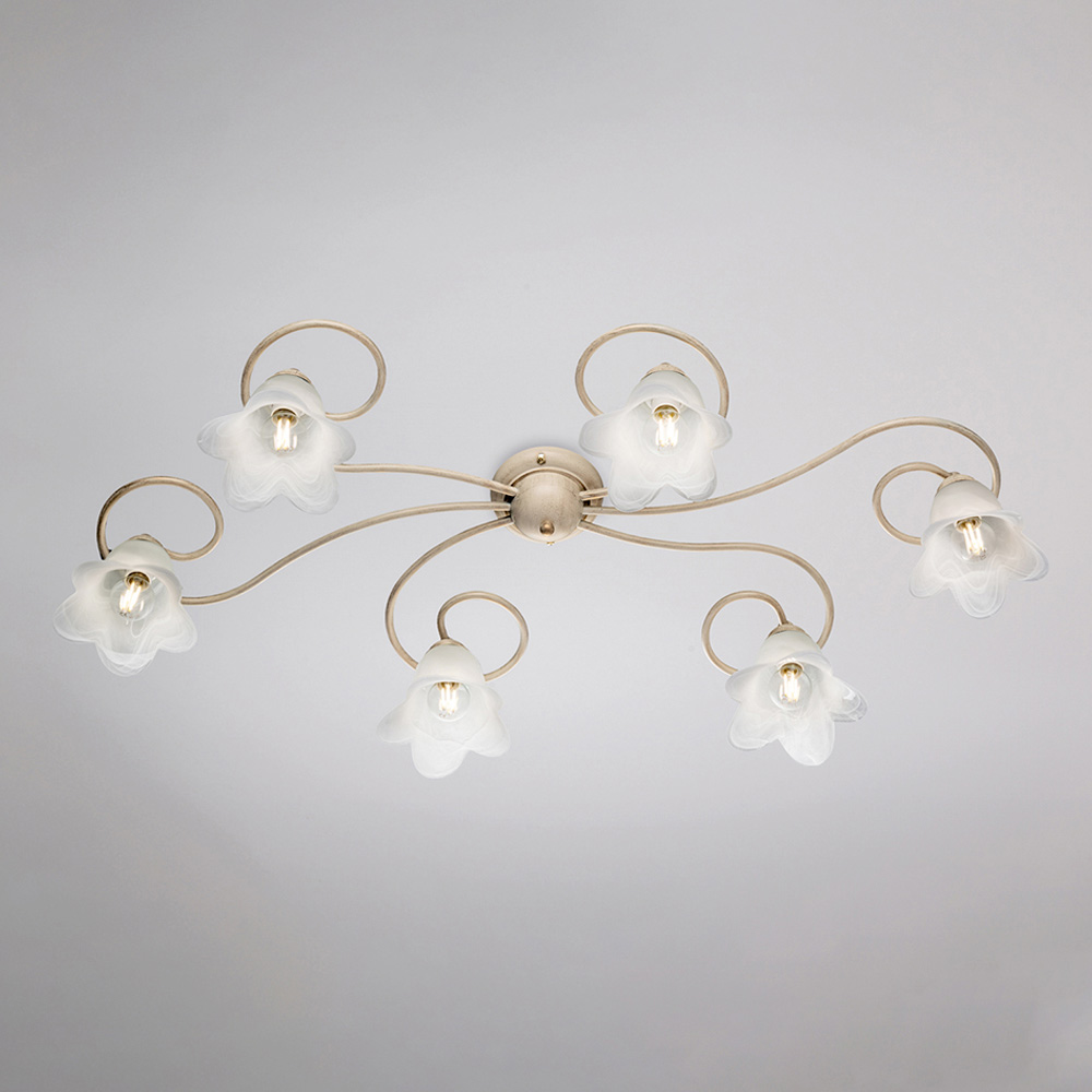 I materiali selezionati, ferro e vetro, donano un effetto elegante e una resa luminosa piacevole. Interamente prodotta in Italia, questa plafoniera nasce da lavorazioni accurate che esaltano estetica e funzionalità.