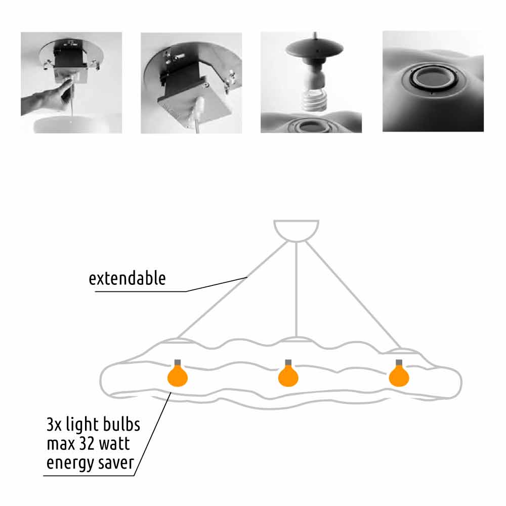 Tipo di illuminazione: 3 x max 32W E27 fluorescenti compatte 230V 50/60 Hz (non fornite).