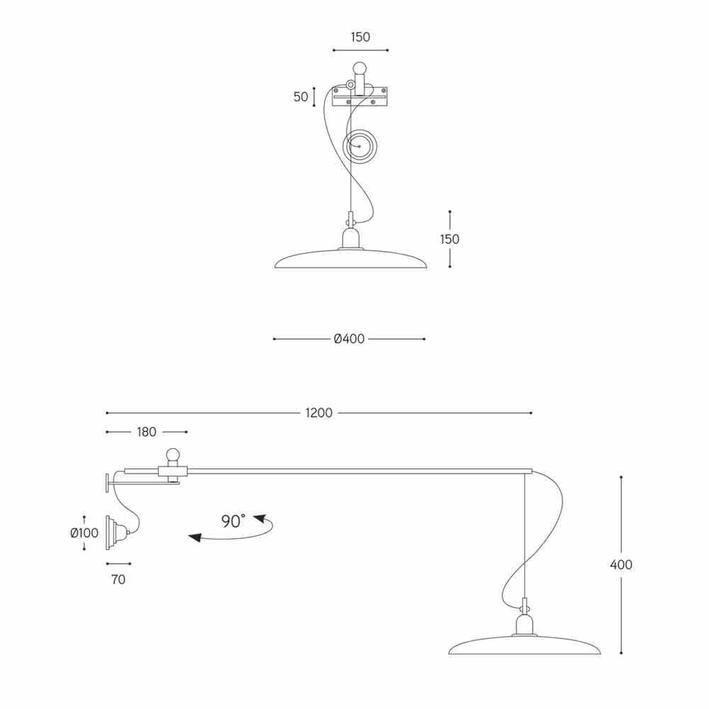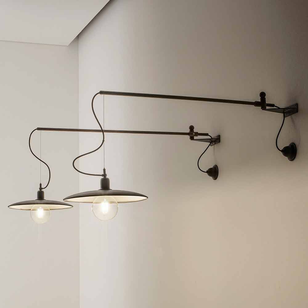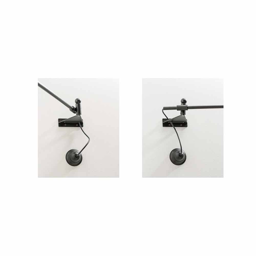 È dotata di un braccio movibile in senso orizzontale per 90°, che ne consente lo spostamento in base alle varie esigenze. L'applique si muove orizzontalmente, rimanendo sempre in posizione parallela al pavimento.