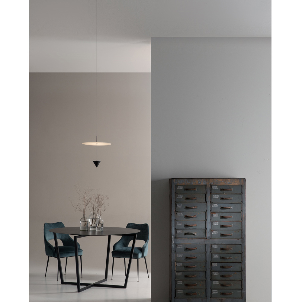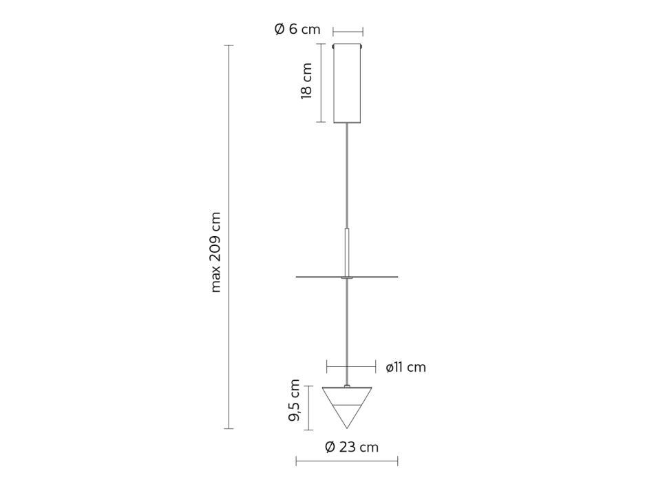 Si compone di un elemento circolare di decoro in alluminio bianco ed un cono nero.