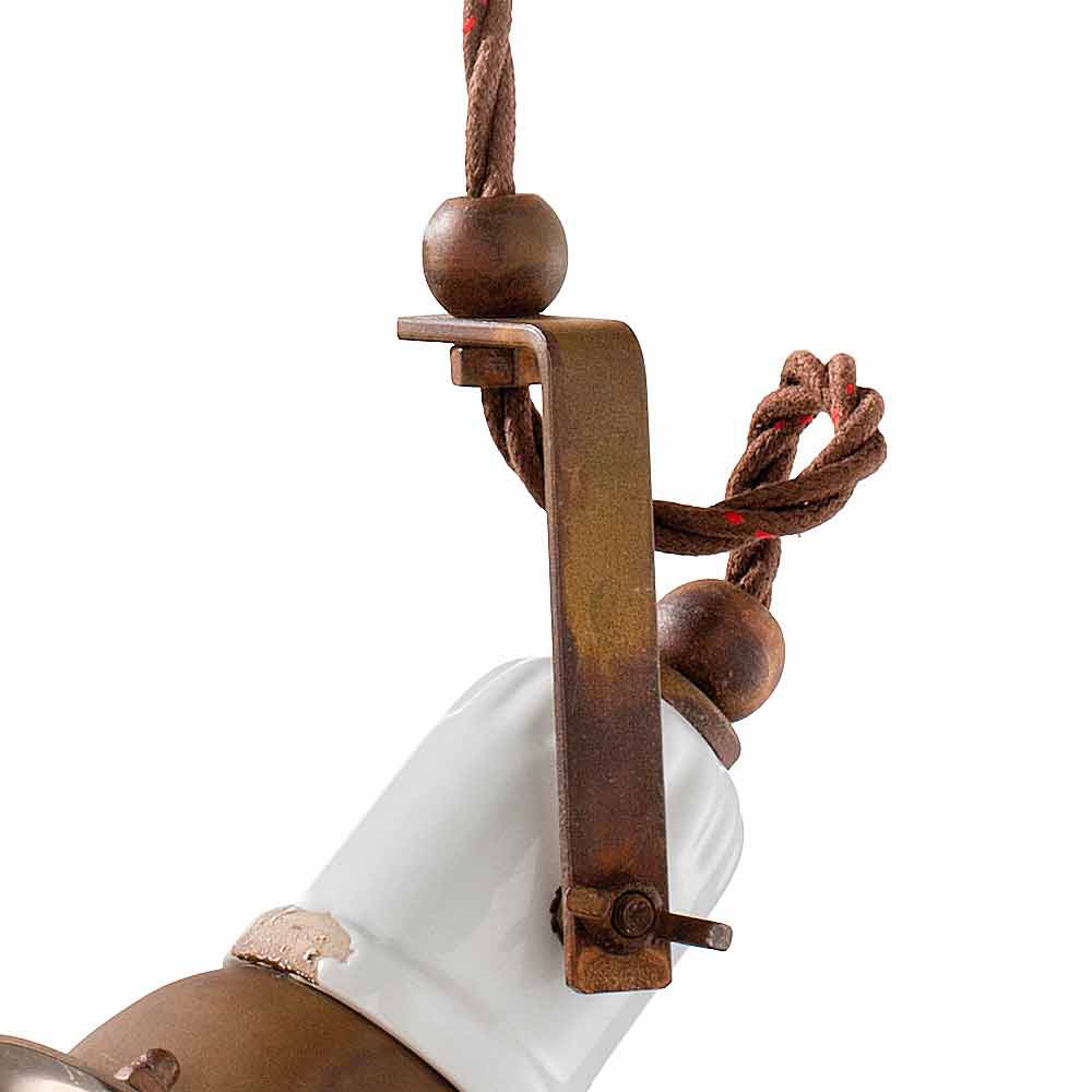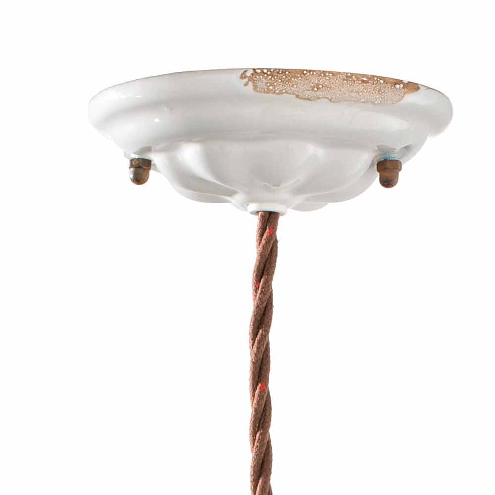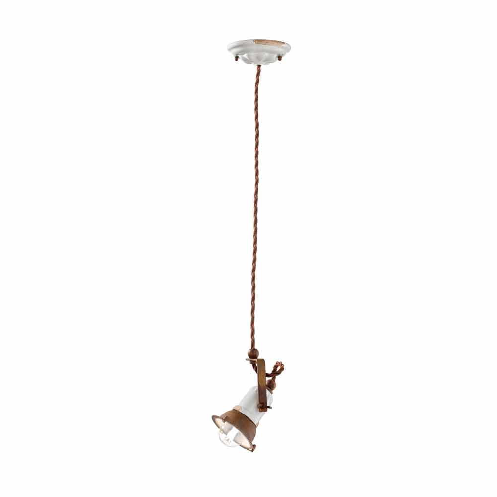 Luce direzionabile, ceramica con finiture vintage in perfetta armonia con il metallo ossidato: una sospensione unica nel suo stile, dal sapore antico, perfetta per gli ambienti più ricercati.