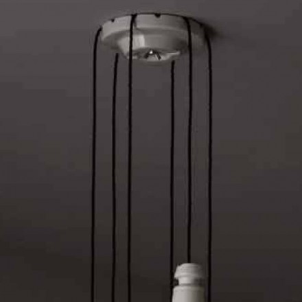 Lampada sospesa a 2 luci in metallo e ceramica con passanastri, artigianato made in Italy by Ferroluce.