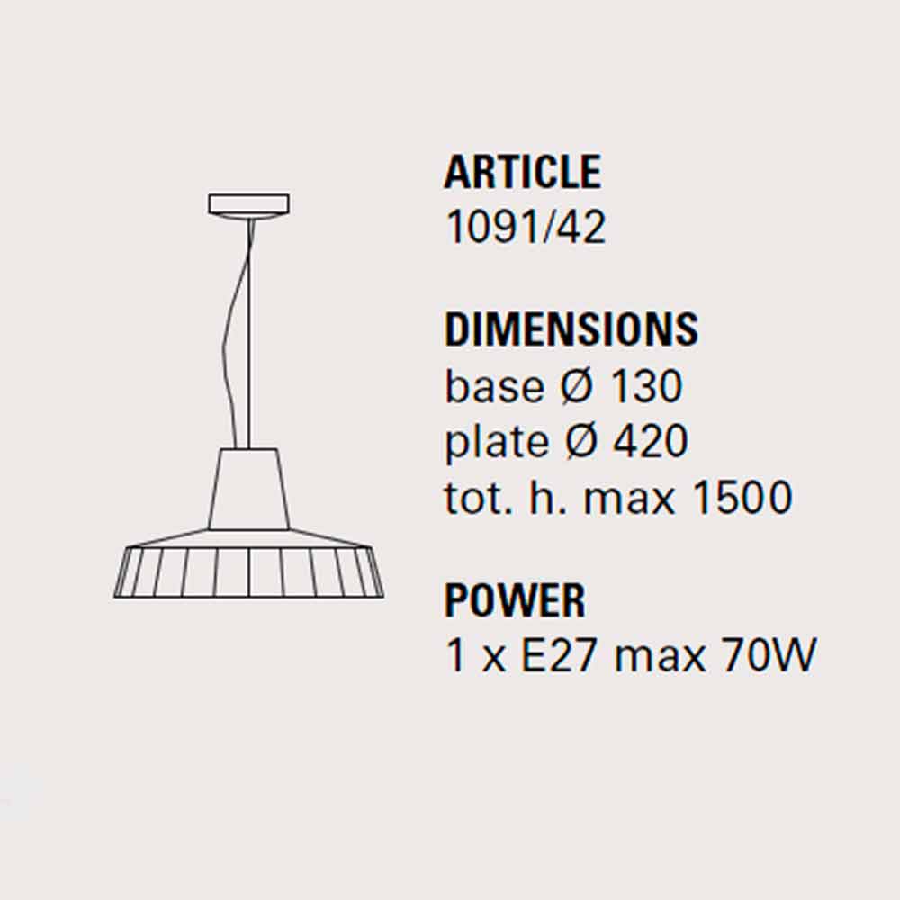 Dimensioni: base Ø130 x plate Ø420 x H tot 1500 mm