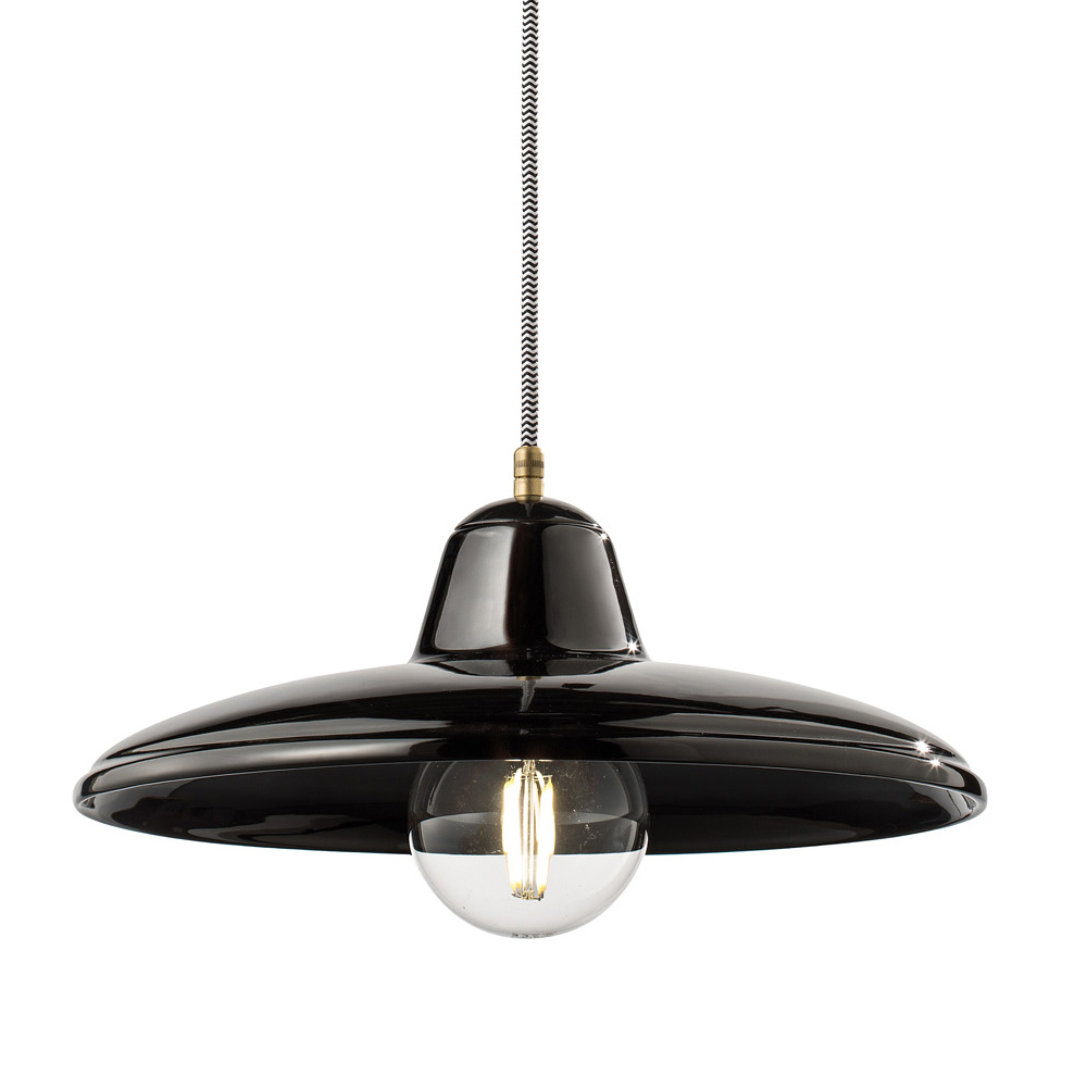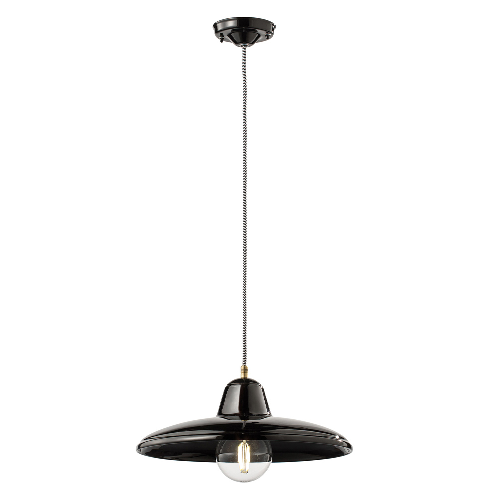 Lampada sospesa in ceramica nera e ferro, stile retrò made in Italy by Ferroluce.