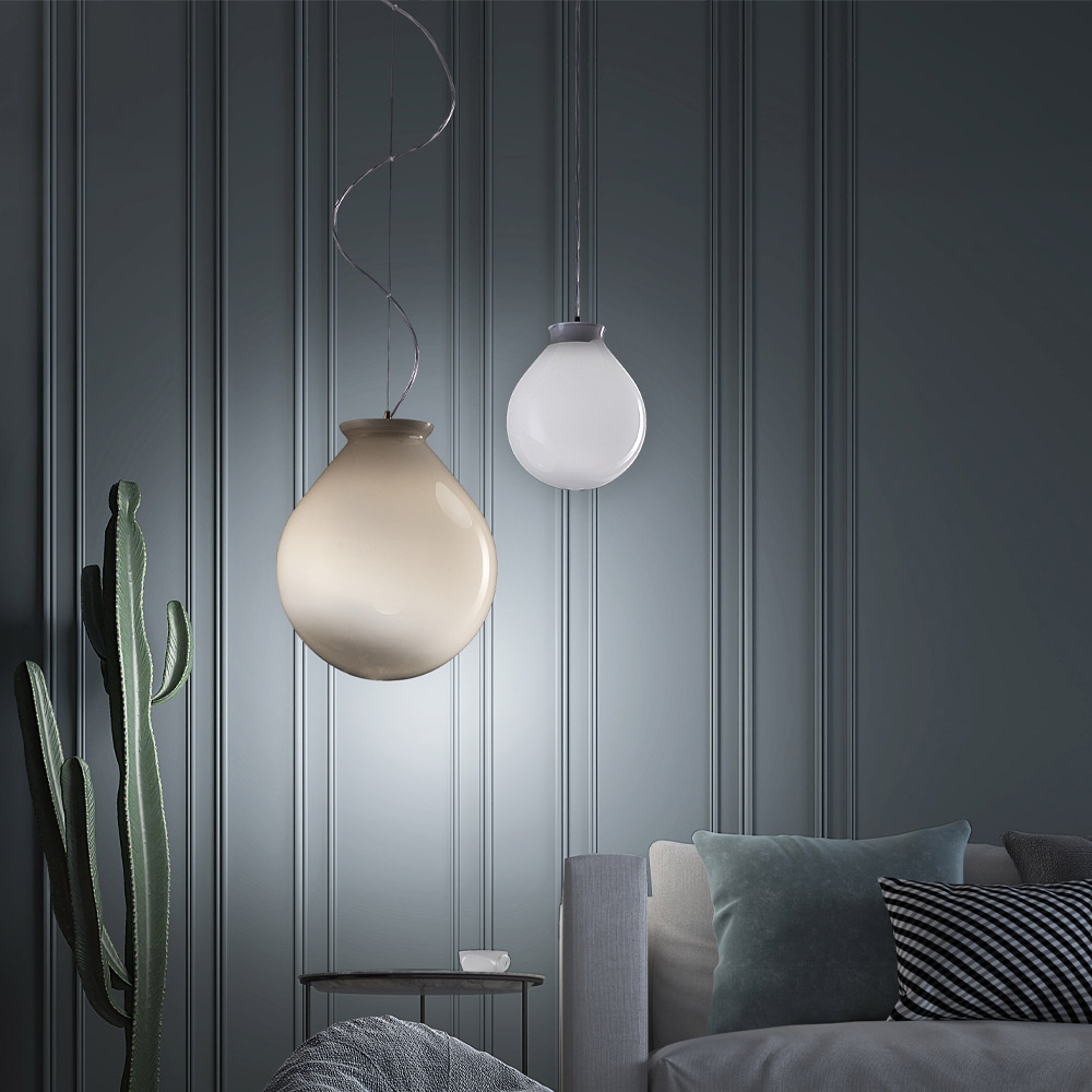 Lampada sospesa artigianale in vetro soffiato veneziano, design moderno.