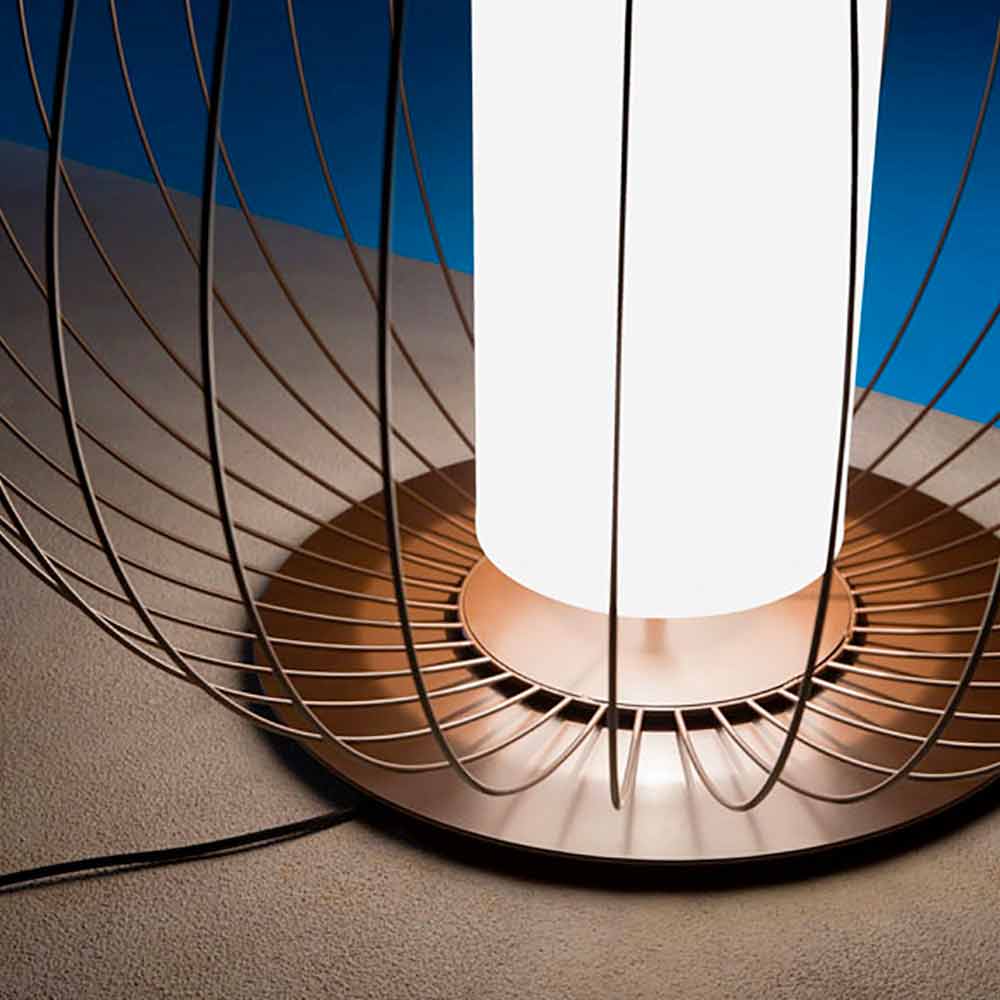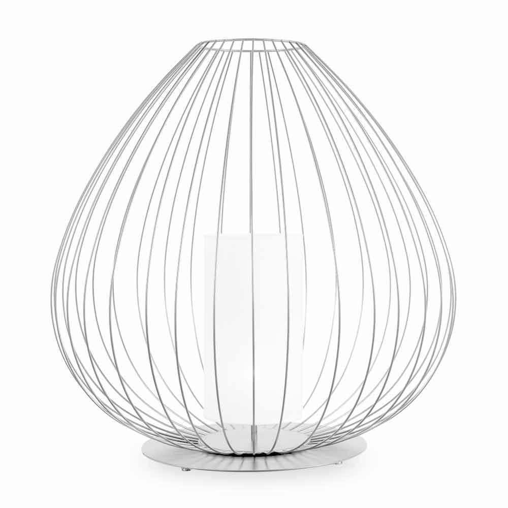 Questa originale e singolare lampada da appoggio presenta un design ispirato alle lanterne che volano nel cielo, riproponendone la struttura e lo spirito grazie alle sue linee sottili che sfidano l'aria realizzate in filo metallico, per un complemento minimale e dal carattere forte.