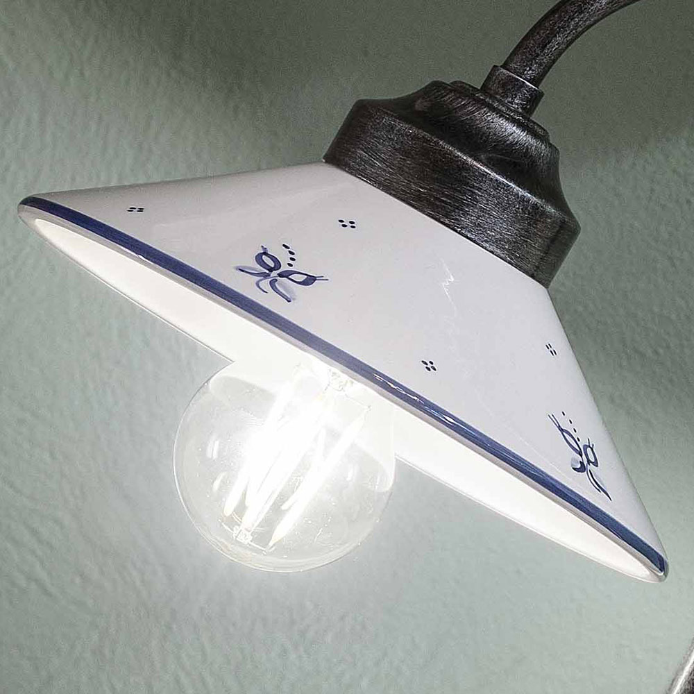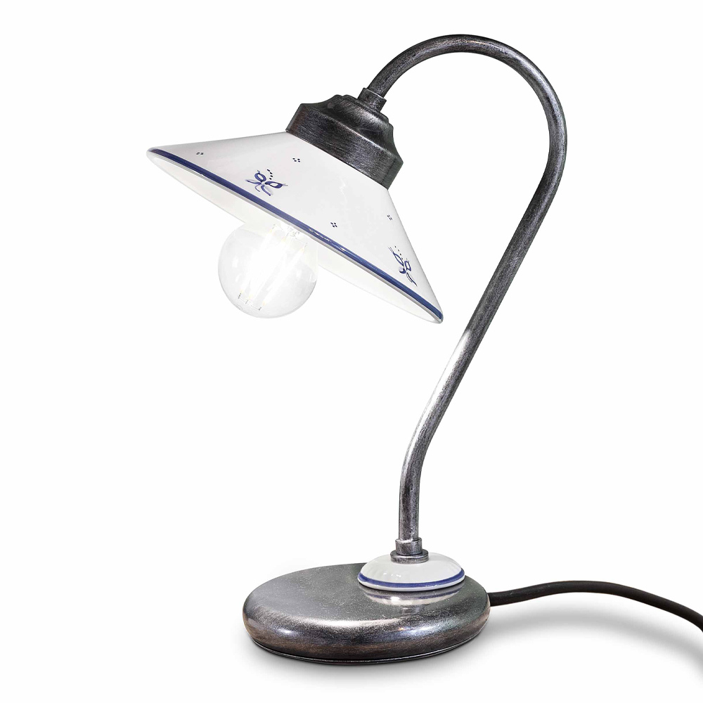 Lampada da tavolo vintage in ferro e ceramica dipinta a mano made in Italy by Ferroluce.