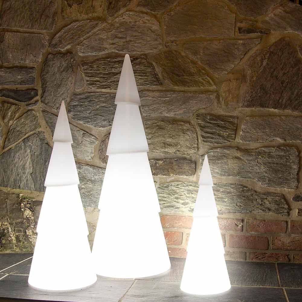 Lampada da terra a forma di albero di Natale a cono in 3 dimensioni e 3 colori design moderno per interni o esterni.