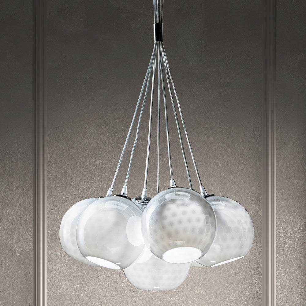 Lampadario a 7 luci in vetro soffiato a mano a Venezia con tecnica Balloton.