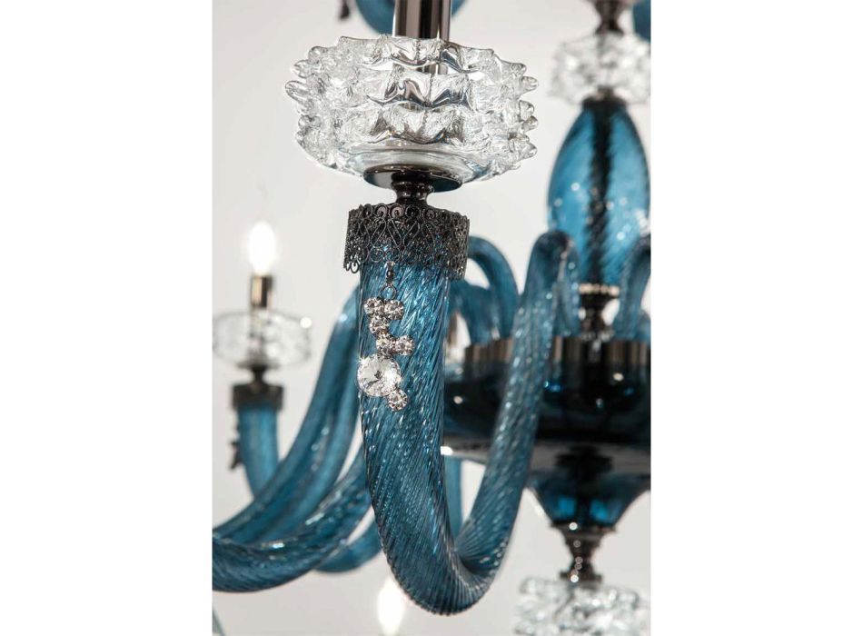 Lampadario 18 luci in vetro artigianale e metallo, design di lusso italiano.