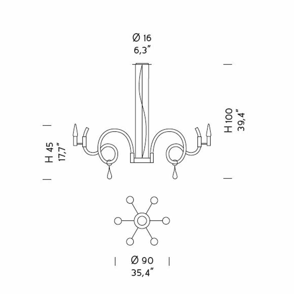NB: il lampadario è disponibile in una vasta gamma di colorazioni differenti ed essendo realizzato a mano è completamente personalizzabile anche per forma e dimensione.