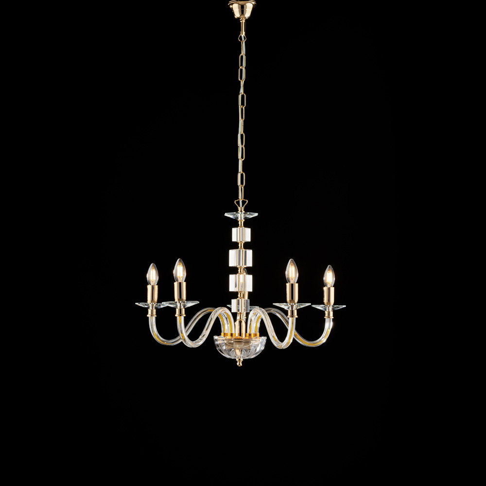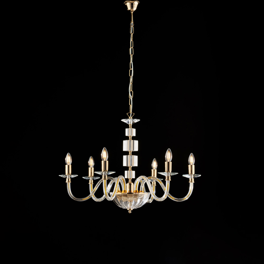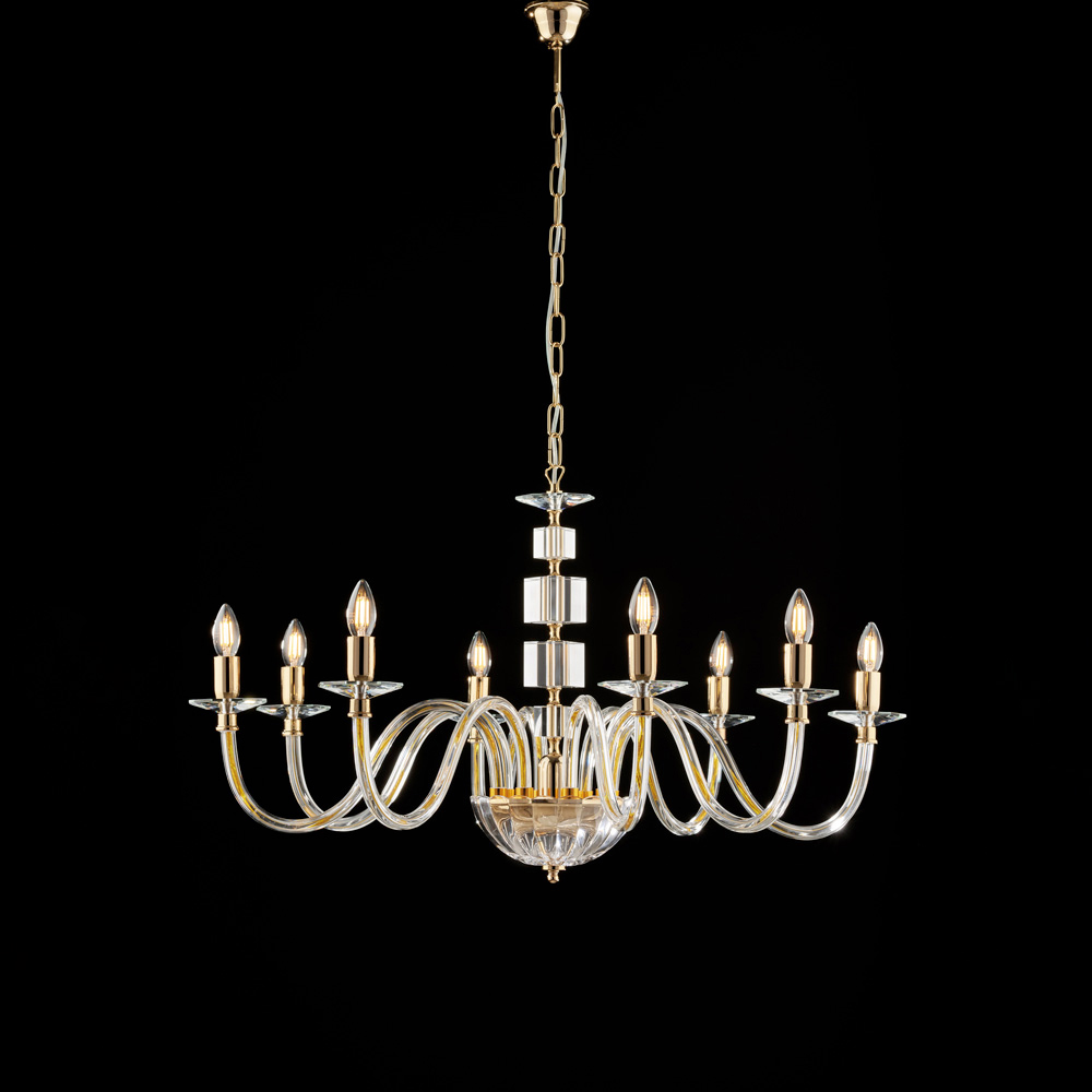 La finitura Cristallo / Oro Lucido esalta la luminosità del lampadario e ne valorizza le forme armoniose, rendendolo ideale per soggiorni di rappresentanza, sale da pranzo eleganti, saloni classici, hotel di lusso e ambienti contract di alto livello. Ogni dettaglio racconta l’eccellenza della lavorazione artigianale Made in Italy.