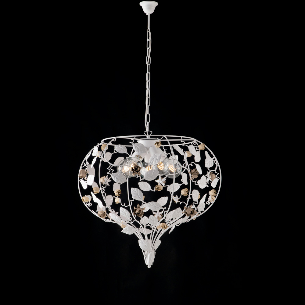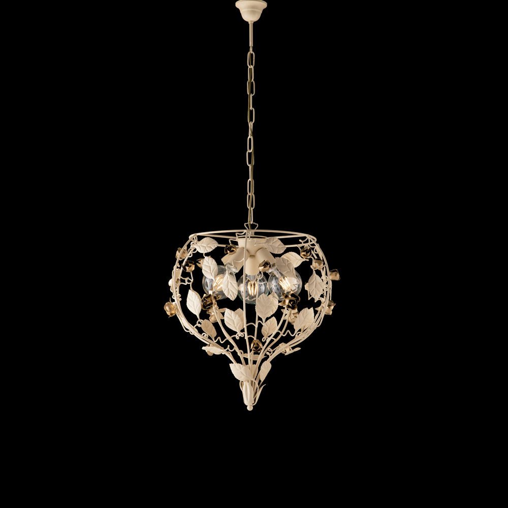 Disponibile nella raffinata finitura Bianco Shabby, luminosa e romantica, oppure nella versione Avorio con dettagli Oro, calda e preziosa, questo lampadario si inserisce con naturalezza in soggiorni eleganti, sale da pranzo, ingressi scenografici e ambienti contract di prestigio.