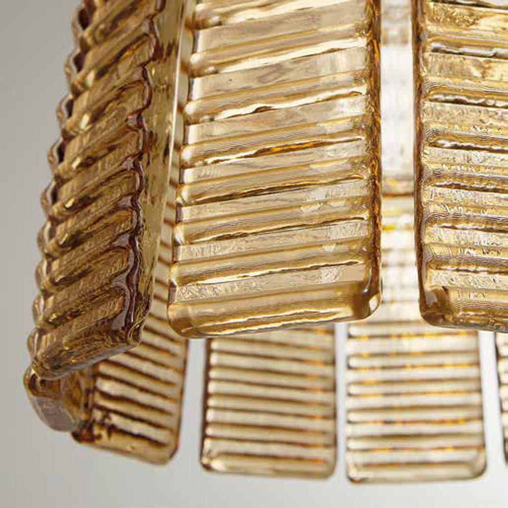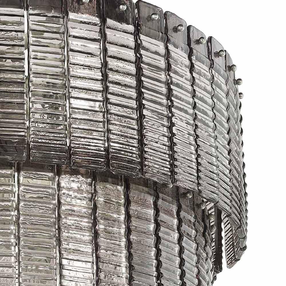 Lampadario 12 luci in vetro artigianale con decoro geometrico, lusso italiano.