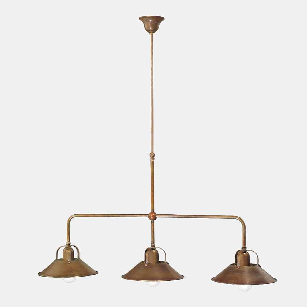Lampadario a 3 lucci dallo stile vintage in ottone, made in Italy.