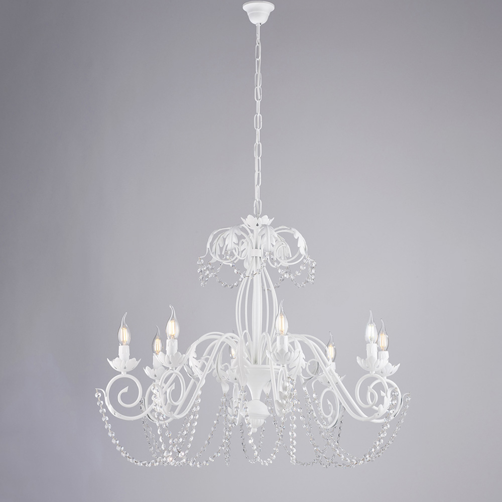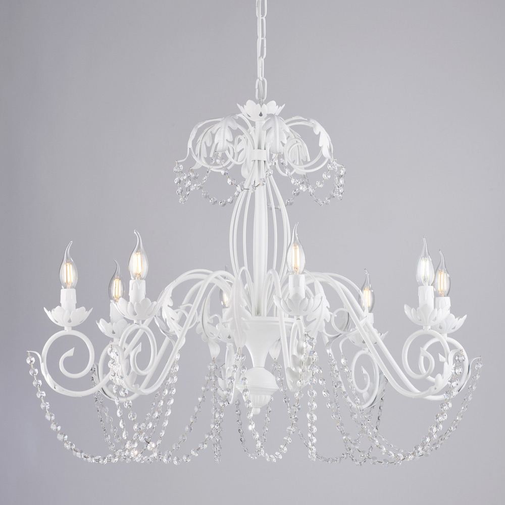 I materiali scelti, ferro e cristallo, donano un effetto elegante e una resa luminosa piacevole. Realizzato interamente in Italia, è sinonimo di qualità artigianale e attenzione alle finiture.