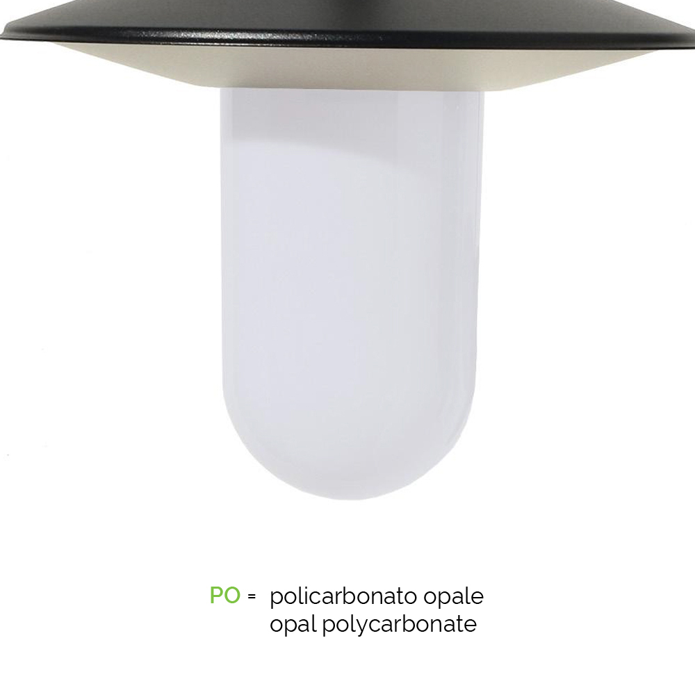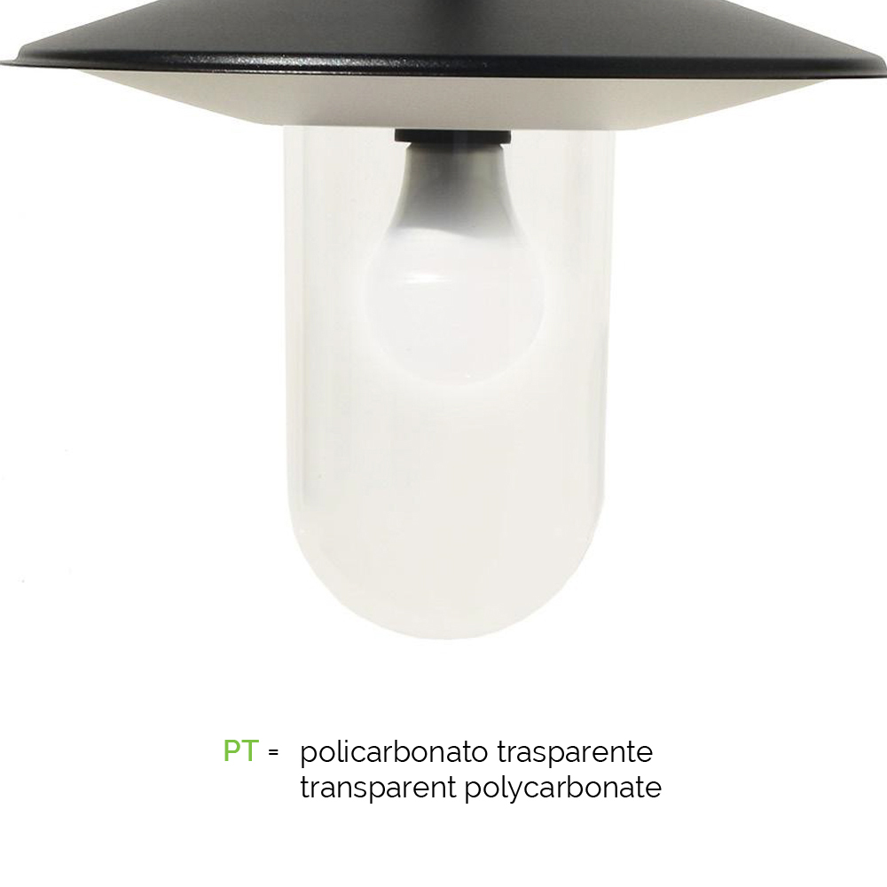 lampadina non inclusa. Viteria in acciaio inox e tasselli di fissaggio inclusi.