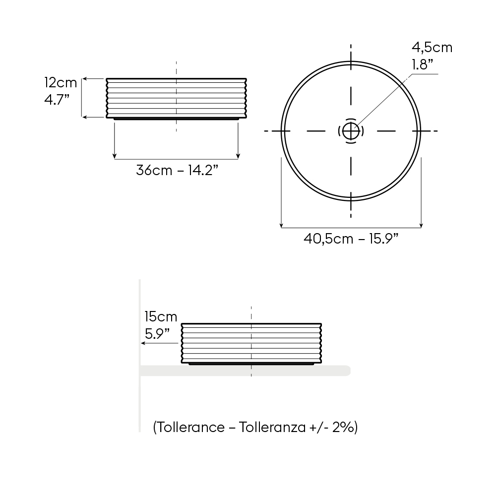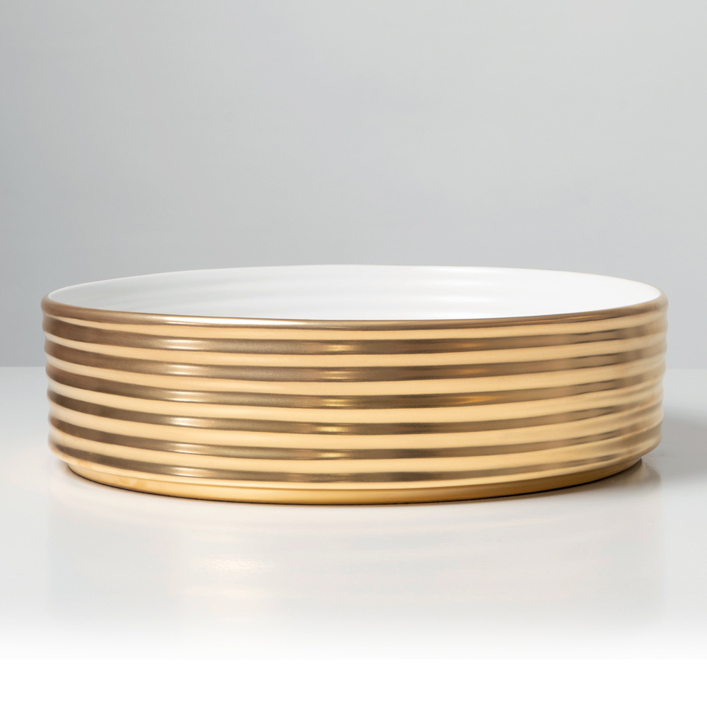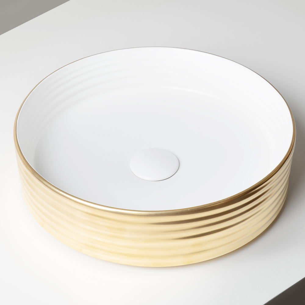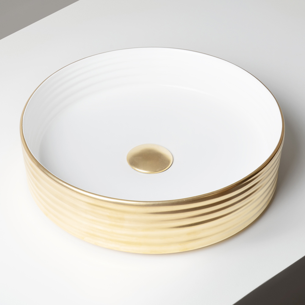 Questo lavabo d’appoggio in gres porcellanato è realizzato tramite tornitura manuale e si distingue per le sue superfici ondulate a fasce orizzontali, capaci di catturare la luce e trasformare la materia in un elemento fluido, morbido e raffinato. Un oggetto di design che unisce ricerca estetica e maestria artigianale.