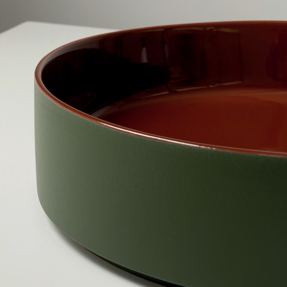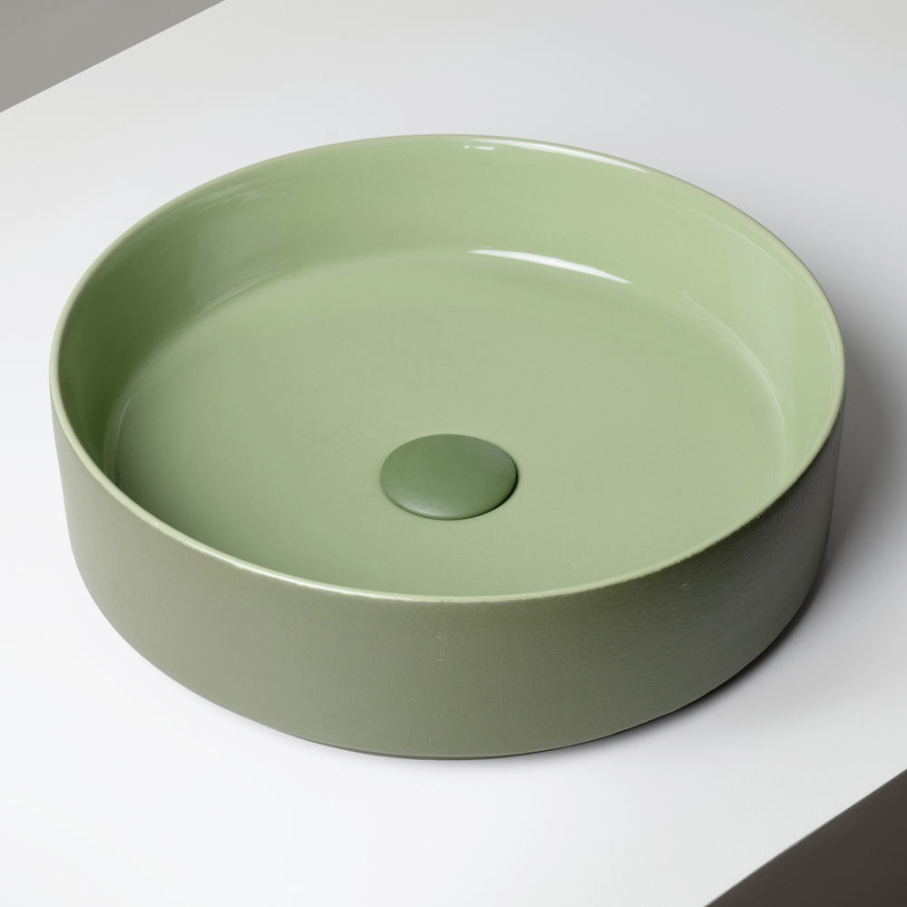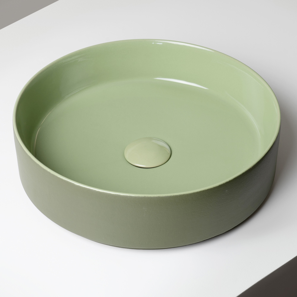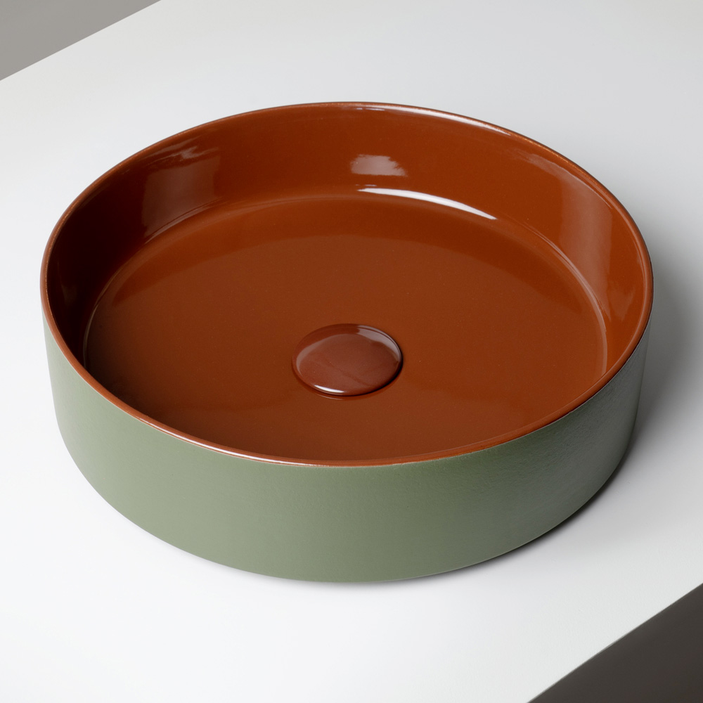 Il lavabo d’appoggio è realizzato in gres porcellanato tornito a mano ed esprime un design contemporaneo che unisce semplicità formale e forte identità cromatica. Prodotto interamente in Italia, è pensato per ambienti bagno moderni e di carattere, dove il colore diventa protagonista.