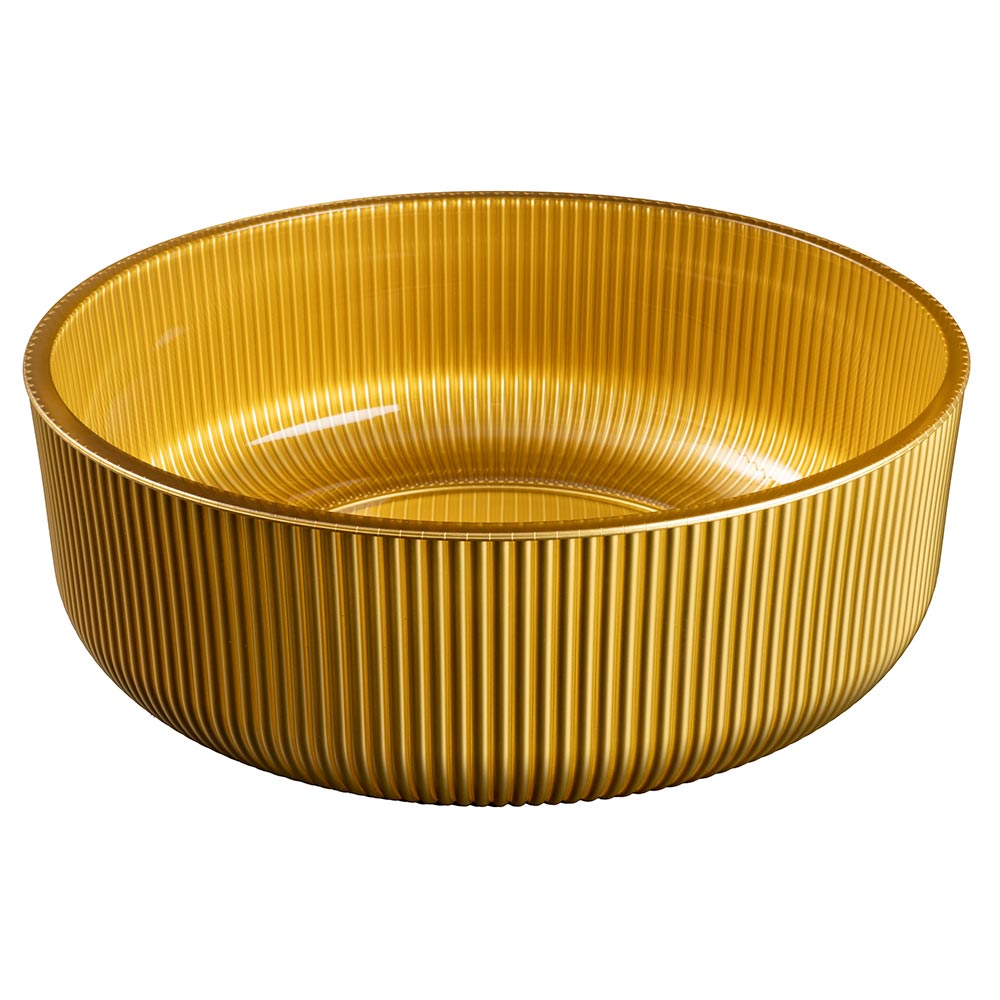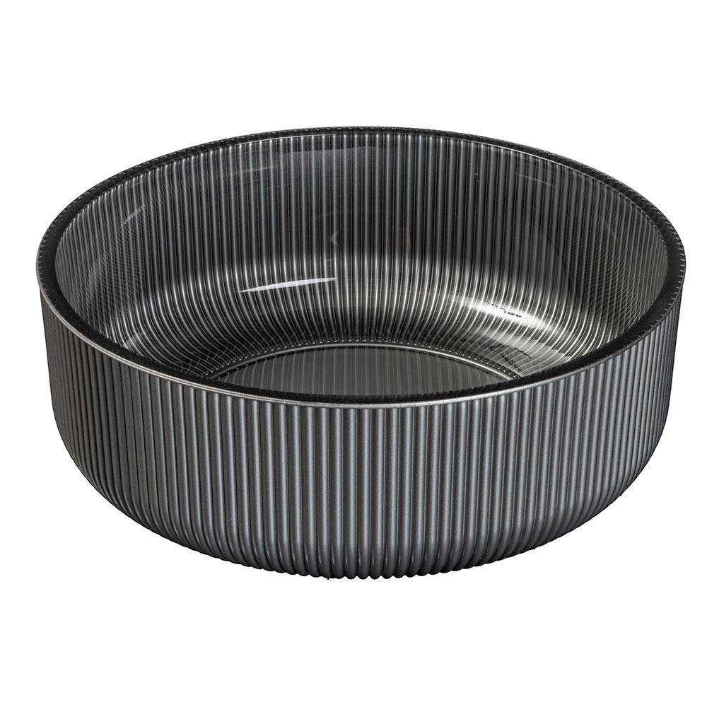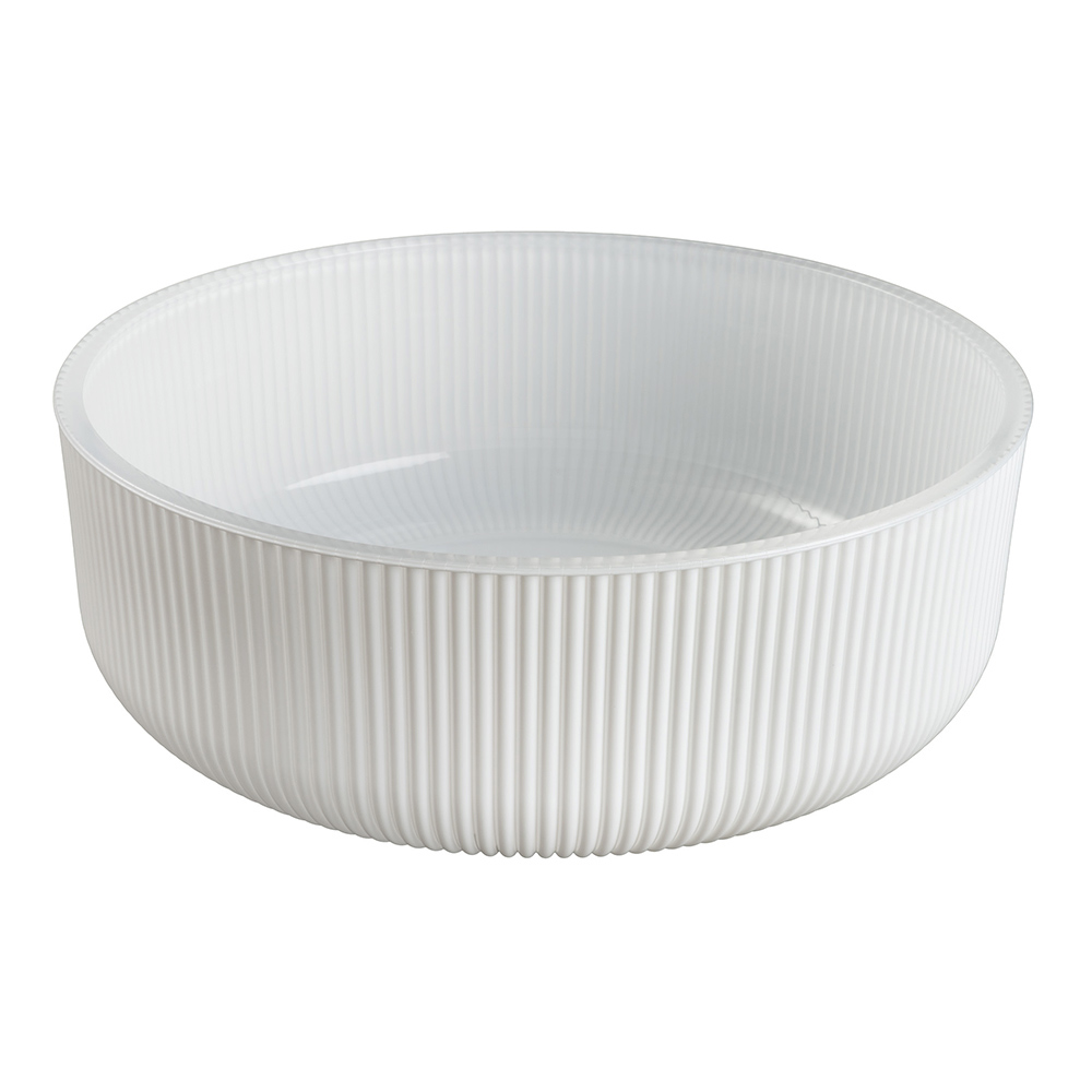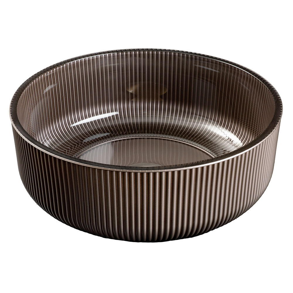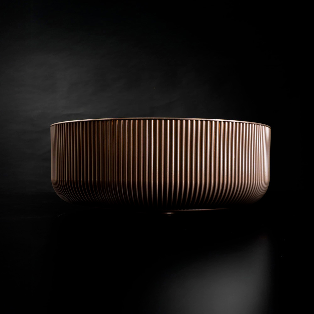 Un elemento d’arredo che diventa protagonista dell’ambiente bagno, questo lavabo in vetro veneziano unisce la maestria artigianale alla raffinatezza estetica tipica del Made in Italy. Realizzato in vetro resinato e verniciato con finiture pregiate, si distingue per la superficie esterna caratterizzata da un elegante motivo rigato che crea giochi di luce e riflessi unici.