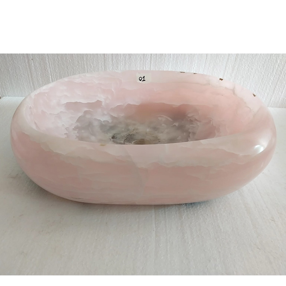 Lavabo da appoggio di design in pietra di onice rosa Baffo,pezzo unico