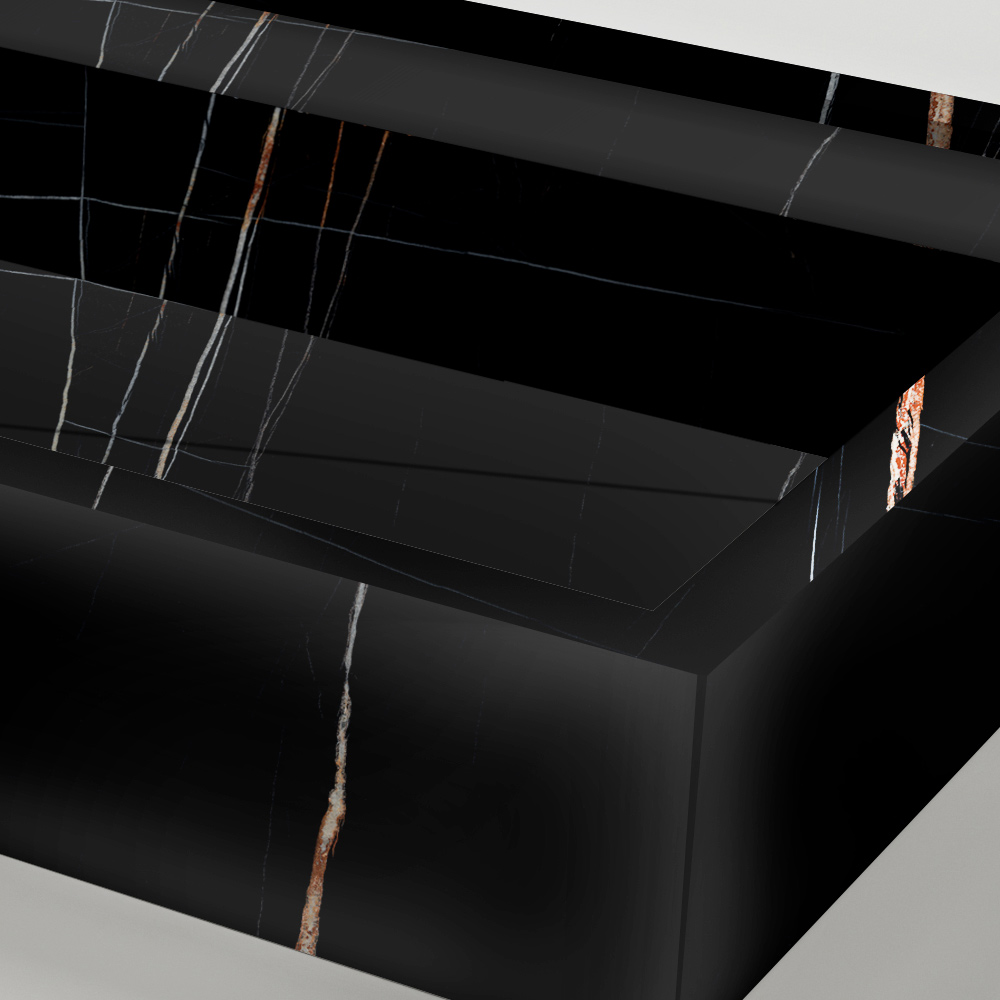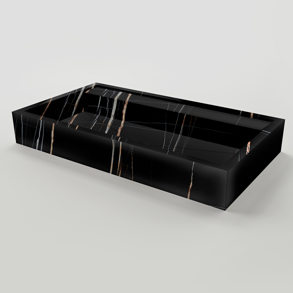 Lavabo da appoggio in gres porcellanato effetto marmo Made in Italy.