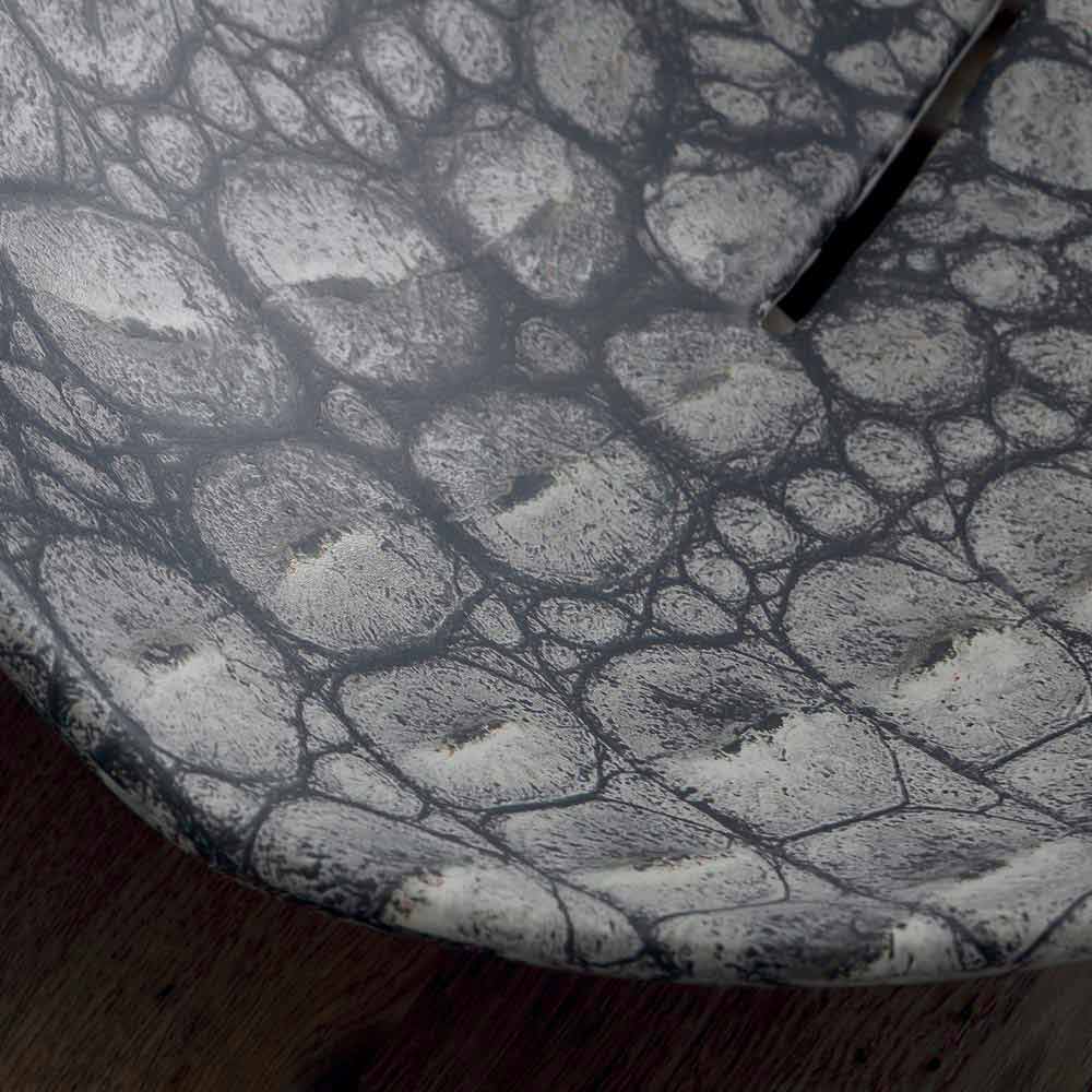 La sua finitura richiama la pelle del caimano.