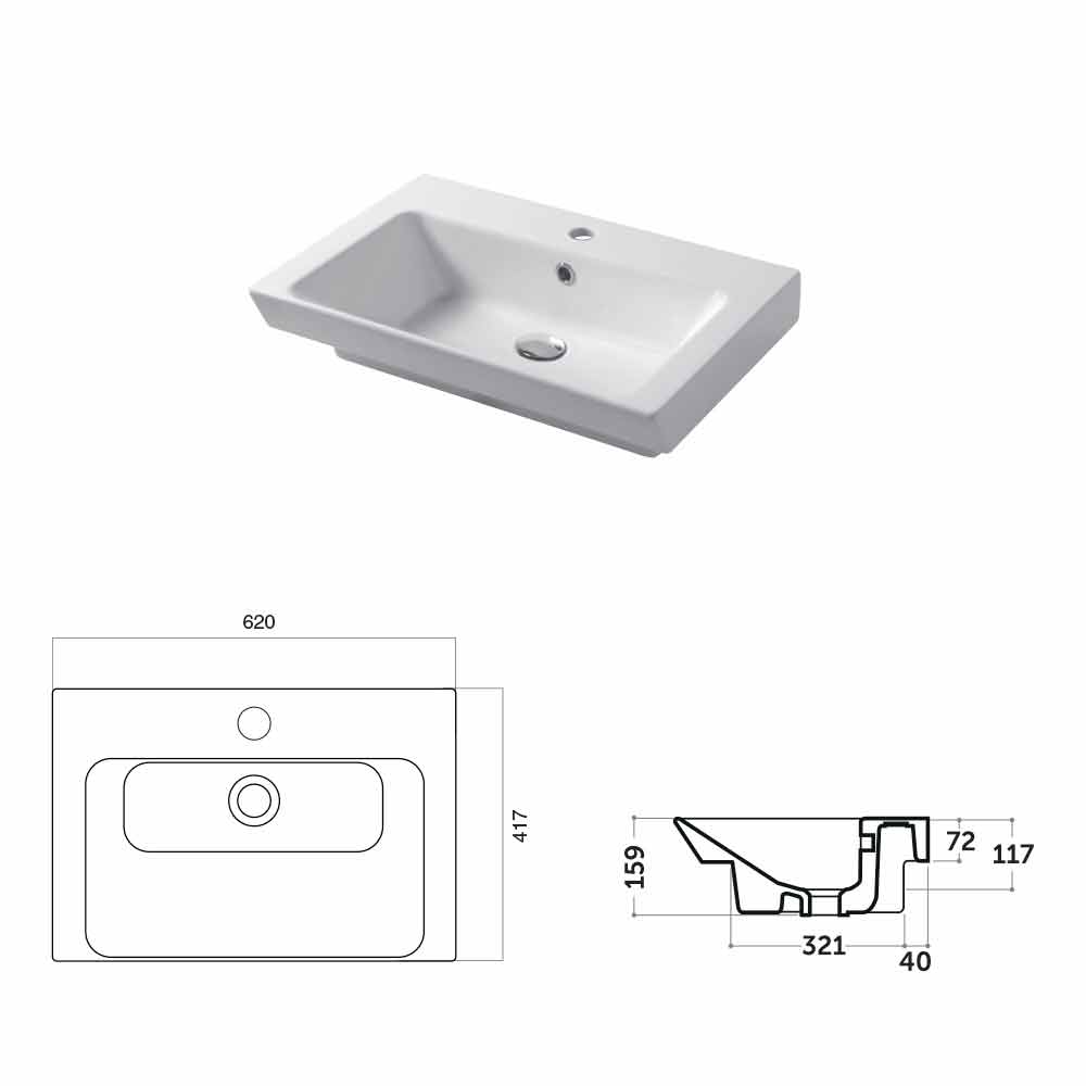 Il lavabo da appoggio e incasso è caratterizzato da un